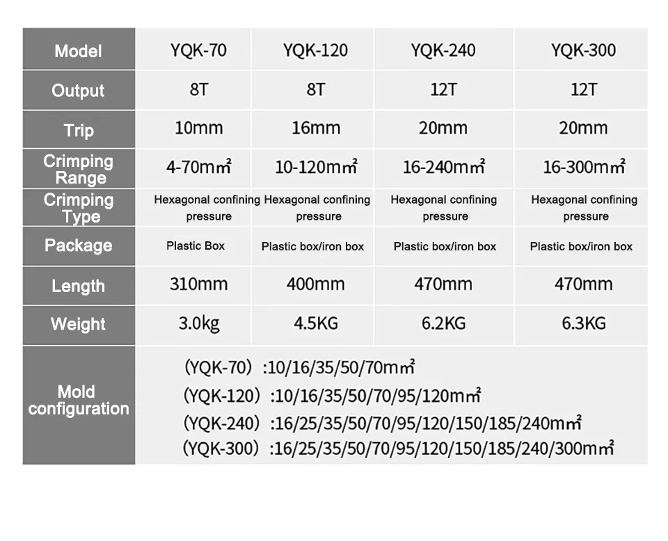 แม่พิมพ์จีบ: 16/25/35/50/70/95/120/150/185/240mm2
