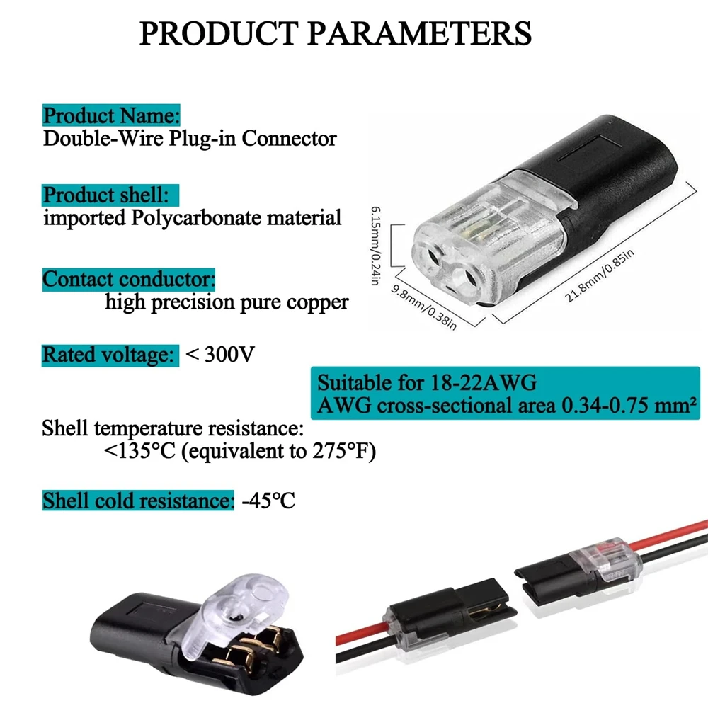 20 Pcs Double-Wire Plug-in Connector ล็อคหัวเข็มขัด-ปลั๊กตัวเชื่อมต่อสายไฟ LED 2 ขา 2 WAY สายไฟ