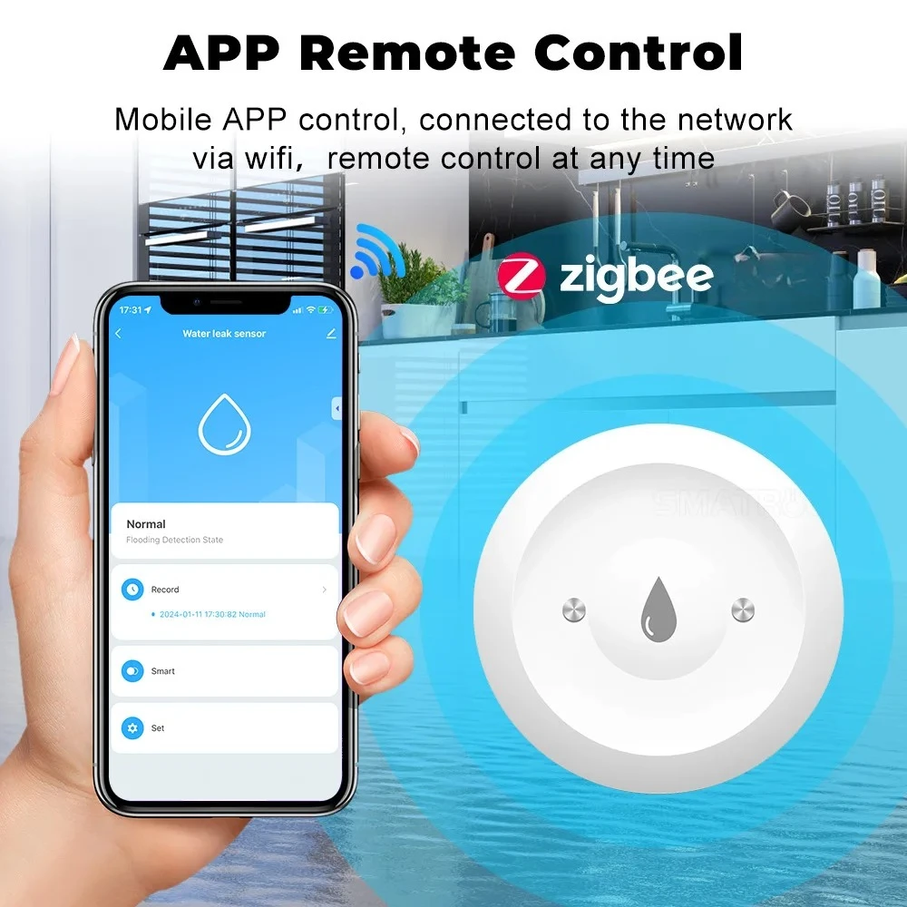 สมาร์ท Zigbee Water Sensor น้ําท่วมเครื่องตรวจจับน้ํารั่ว App การตรวจสอบระยะไกลสนับสนุน Home Assistant Zigbee2mqtt