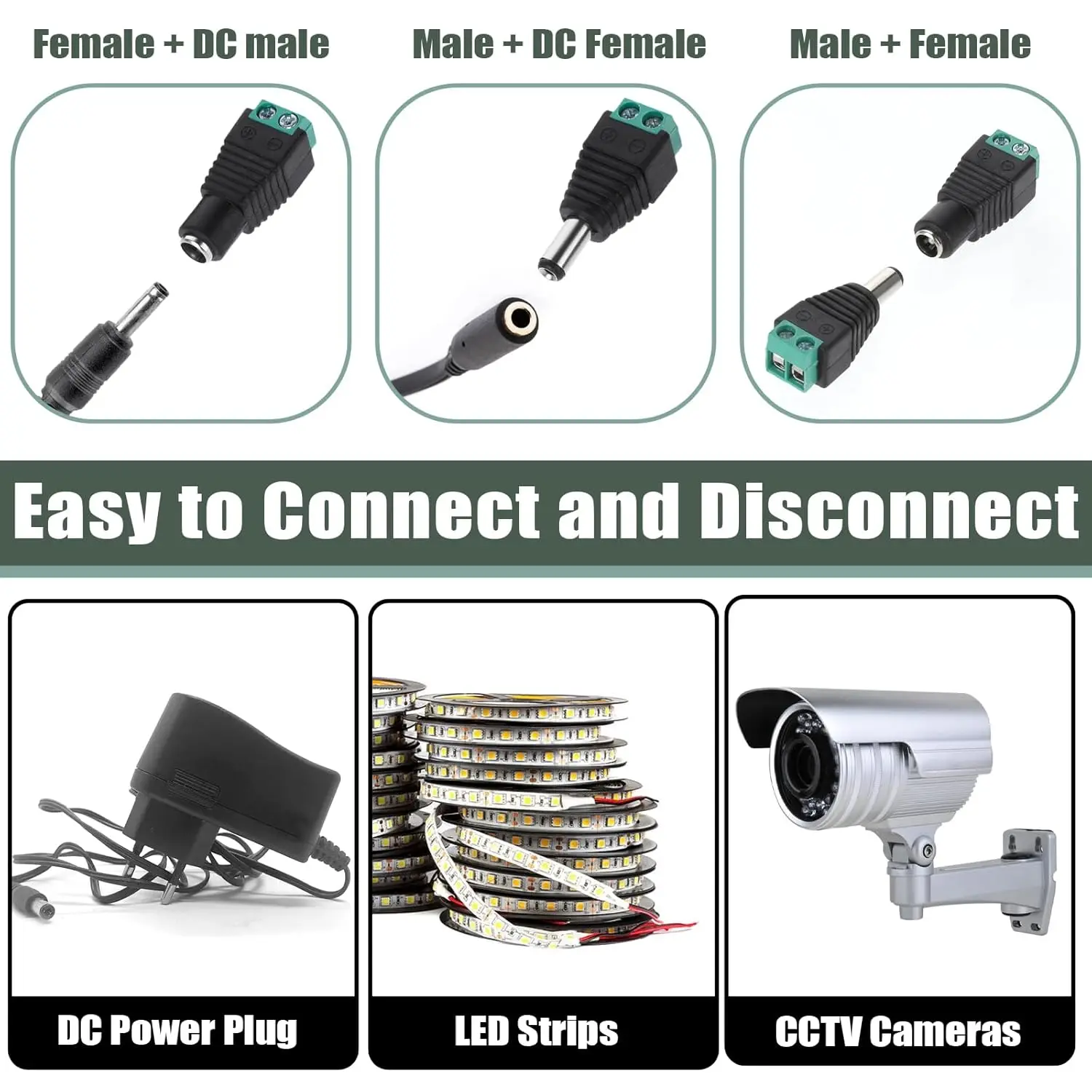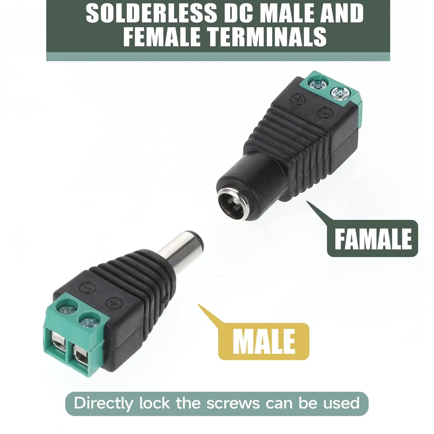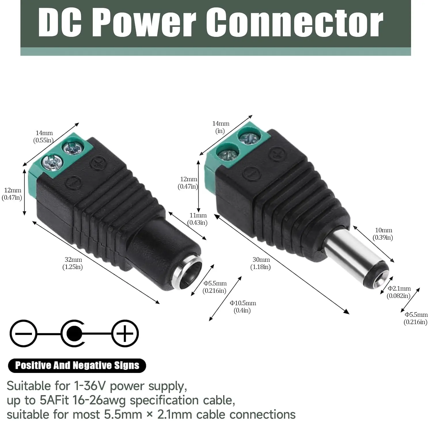 12V ชายและหญิง Barrel Connectors 10 คู่ DC Power Jack ปลั๊กอะแดปเตอร์ 2.1X5.5 มม.ชายหญิงตัวเชื่อมต่อสายไฟ
