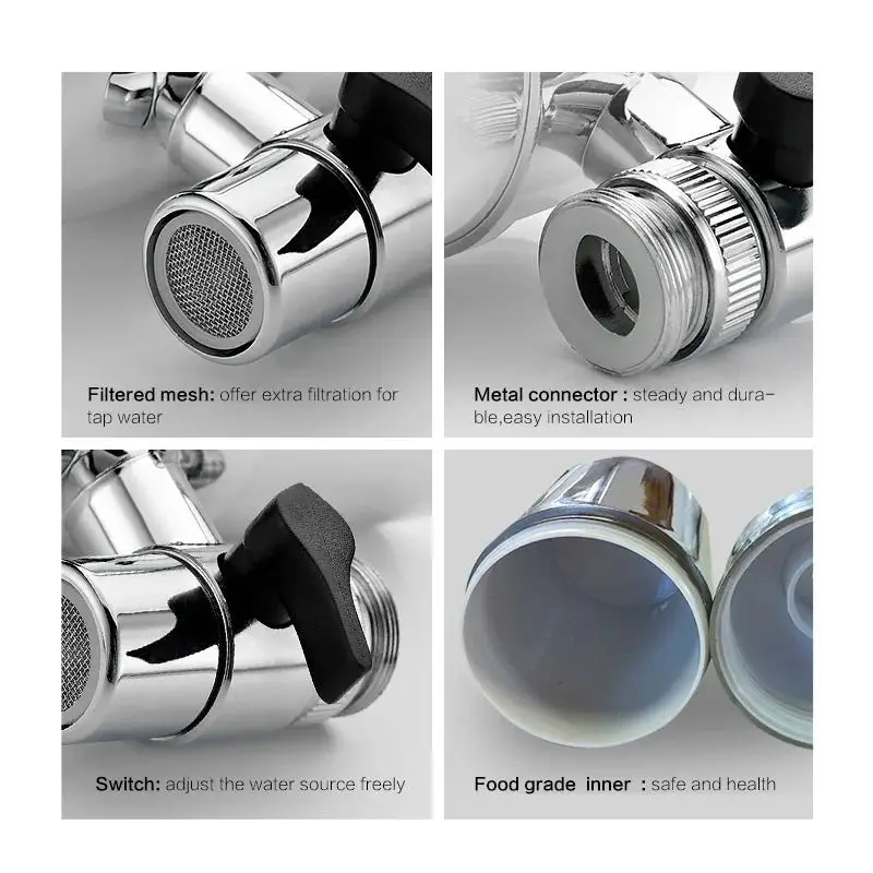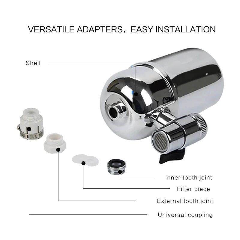 Splash Proof Faucet เครื่องกรองน้ํา Tap สําหรับห้องครัวในครัวเรือนกรองความหนาแน่นสูงลบคลอรีนโลหะหนัก