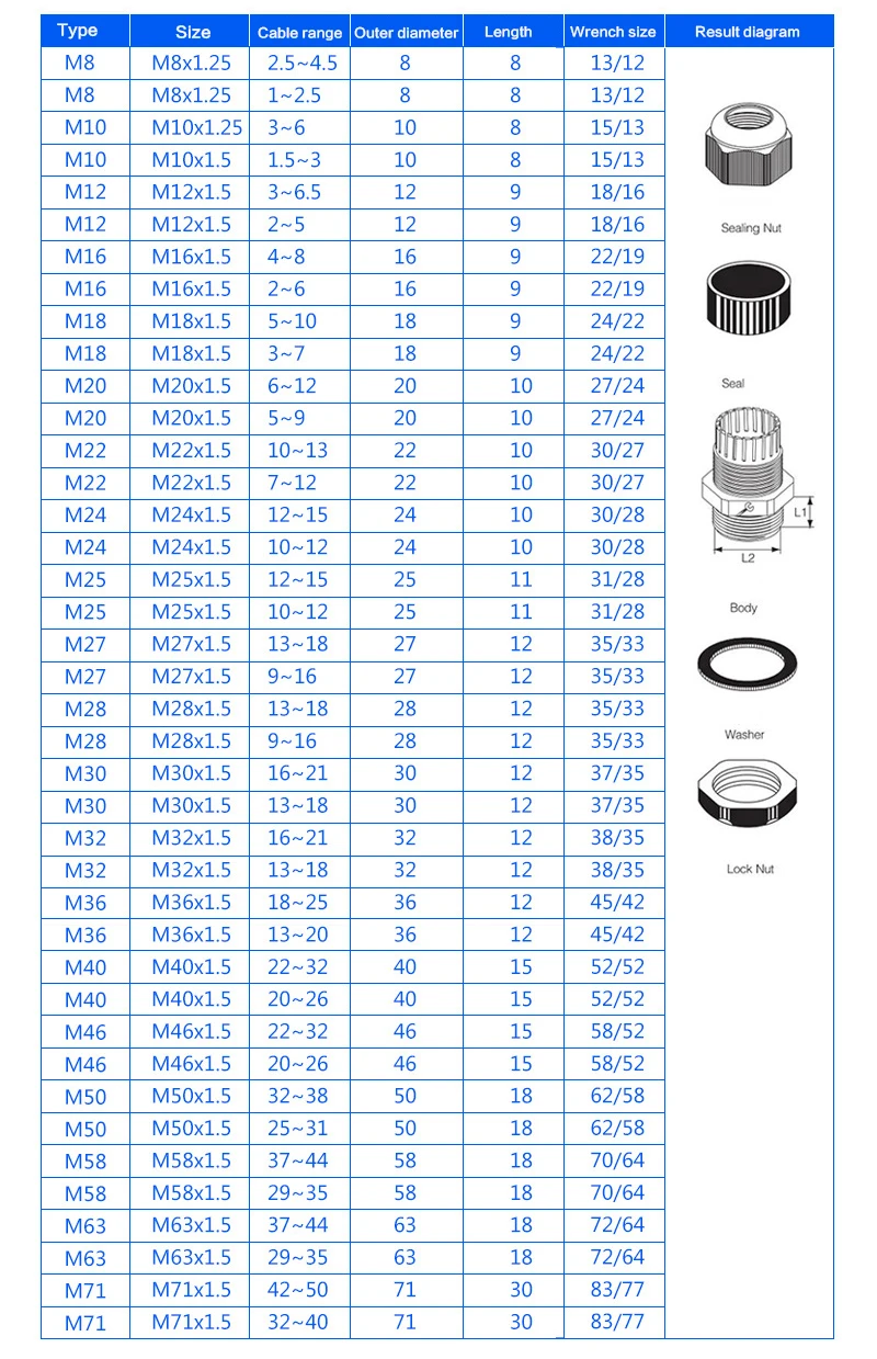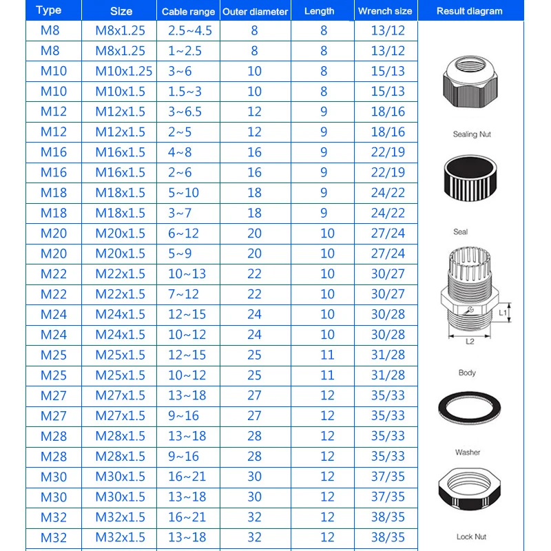 10PCS Pastic กันน้ําไฟฟ้า CABLE GLAND สายไนลอน ENTRY M8/M10/M12/M16/M20 /M25/M32/M36/M40 สาย PASS สายเชื่อมต่อสายไฟ