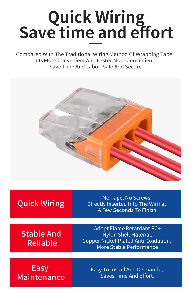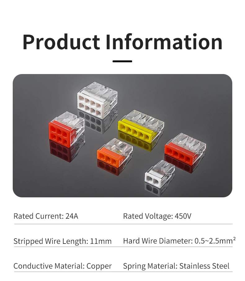 50 ชิ้น Mini Quick ตัวเชื่อมต่อสายไฟ 2/3/4/5/6/8 พอร์ต Terminal Block Hard สแตนเลส Easy ไฟฟ้า Quick Push – In Light House สายไฟ