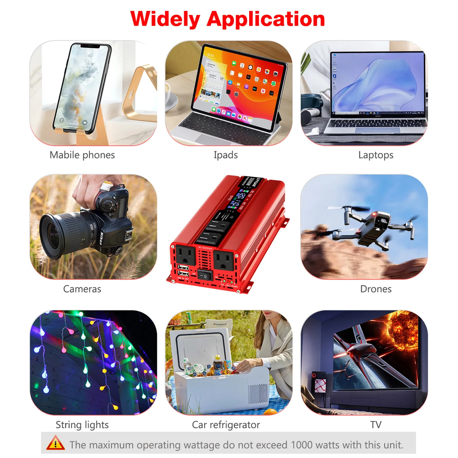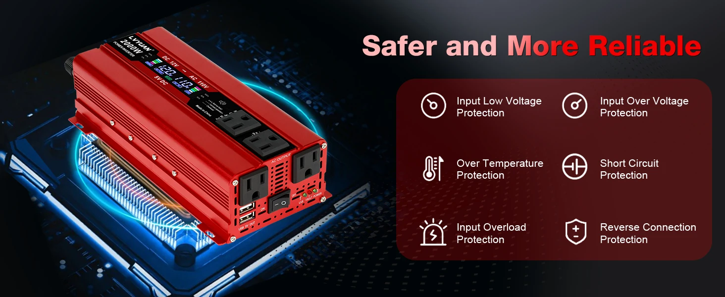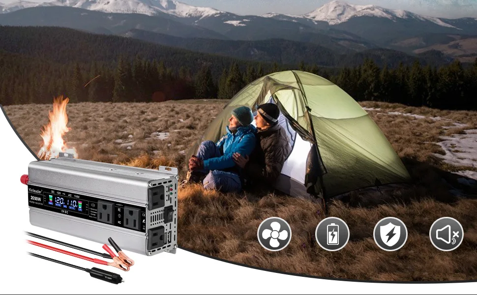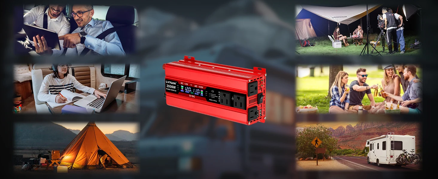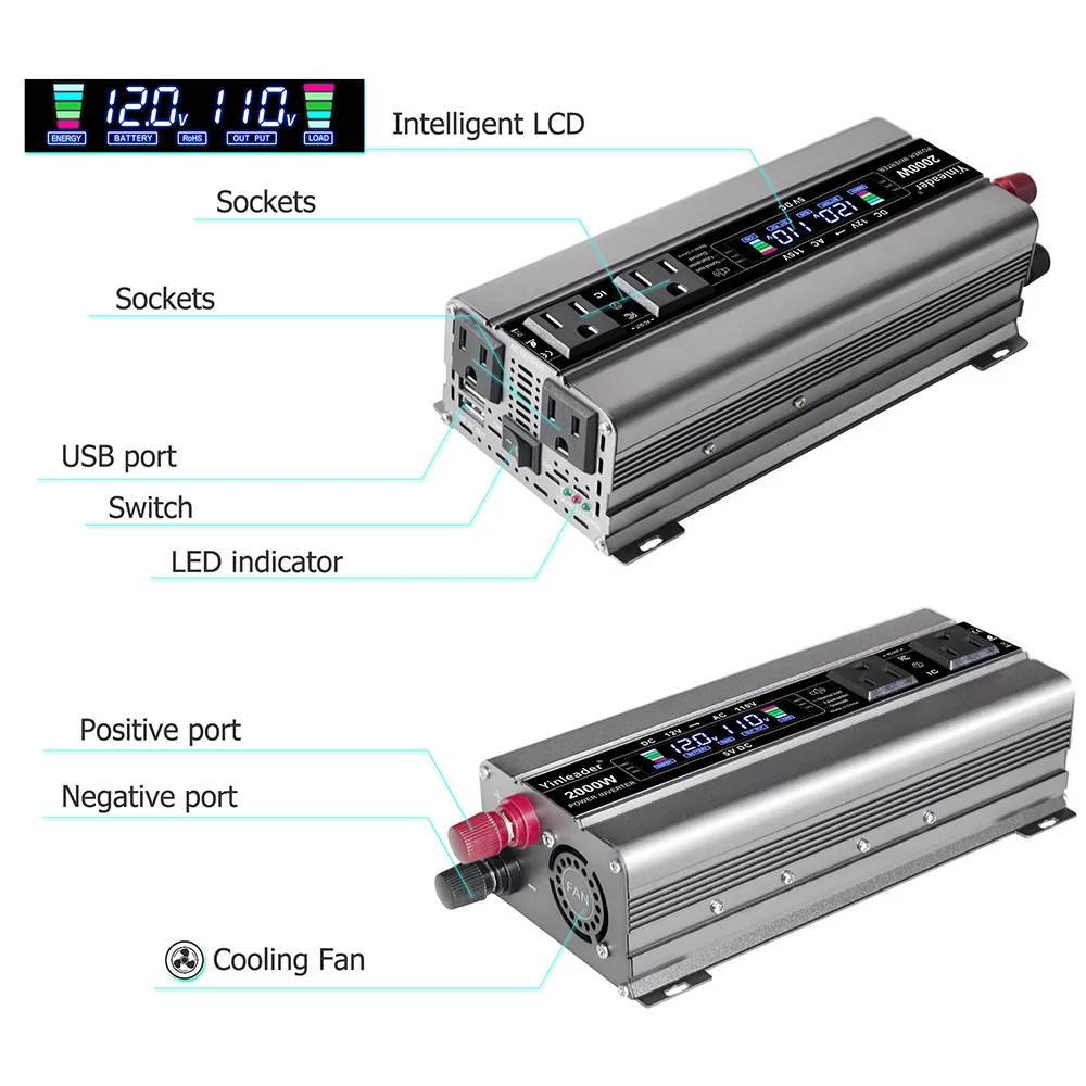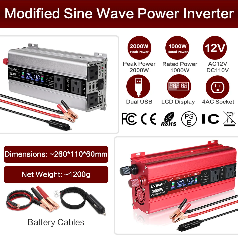 Lvyuan 2000W 12V to 110V รถอินเวอร์เตอร์ดัดแปลง Sine Wave Volatge Converter 60Hz 4 AC US ซ็อกเก็ต Dual USB อินเวอร์เตอร์ LCD
