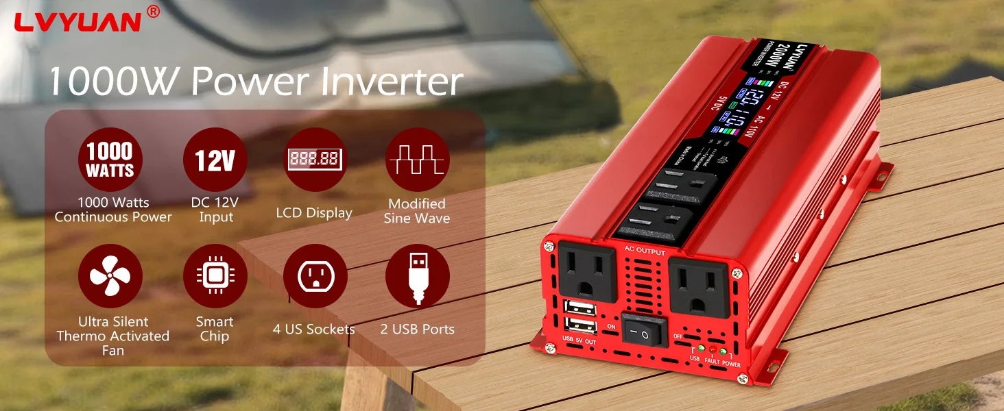 12V to 120V Lvyuan 2000W รถอินเวอร์เตอร์ Modified Sine Wave Volatge Converter 60Hz 4 AC US ซ็อกเก็ต Dual USB LCD อินเวอร์เตอร์