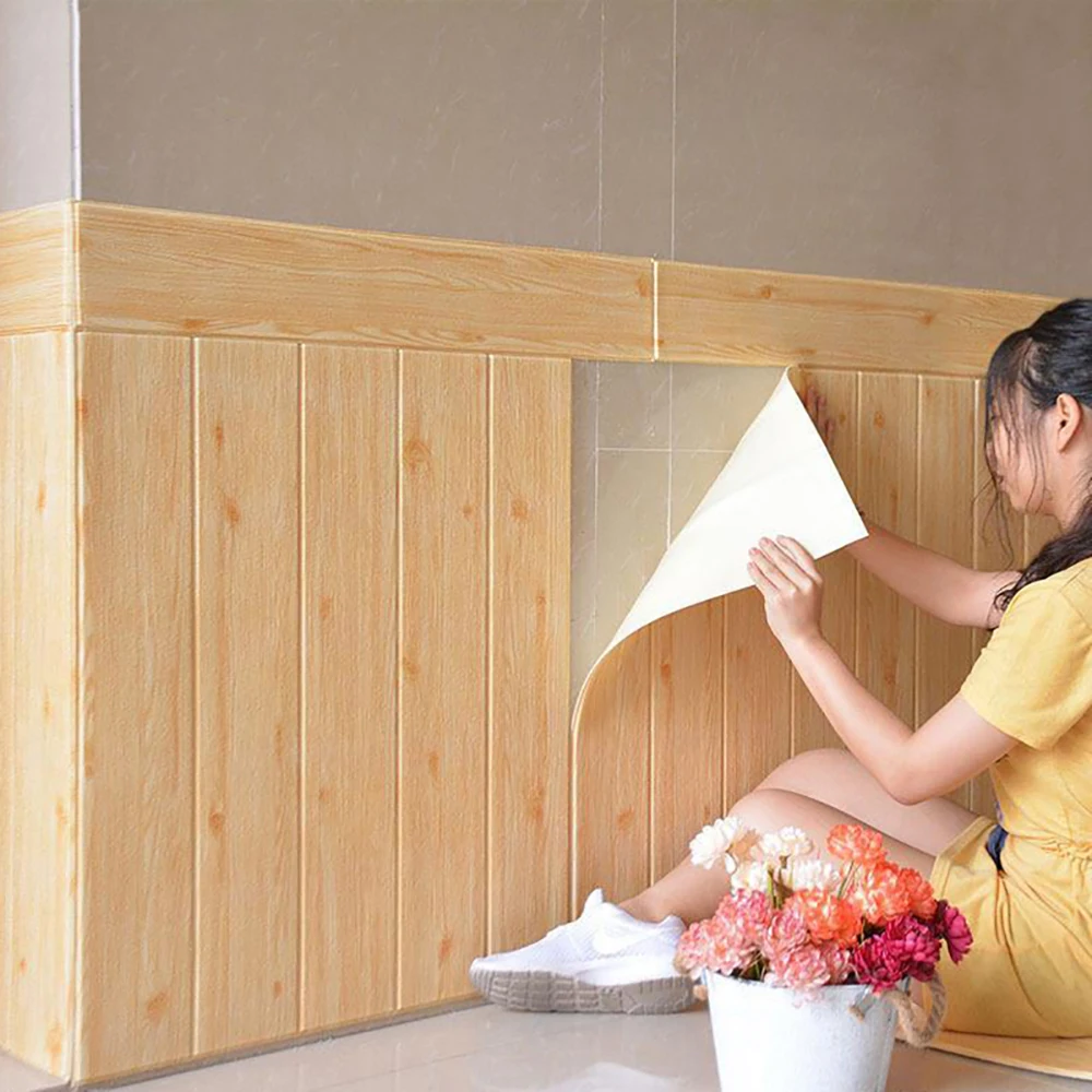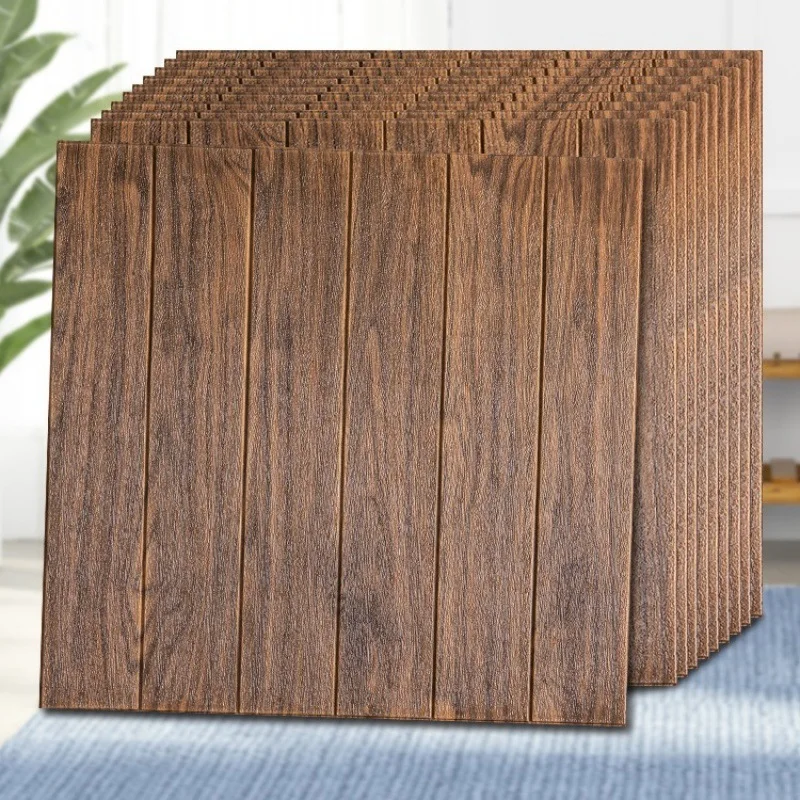 สติกเกอร์ติดผนังกาวในตัวลายไม้3D 35*35ซม. 10ชิ้นตกแต่งผนังพื้นหลังกันน้ำห้องนั่งเล่นห้องครัว
