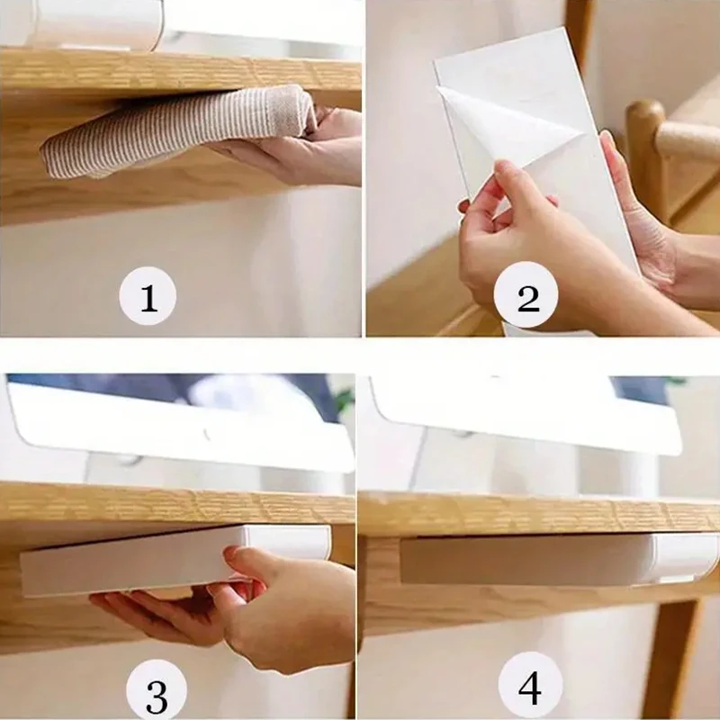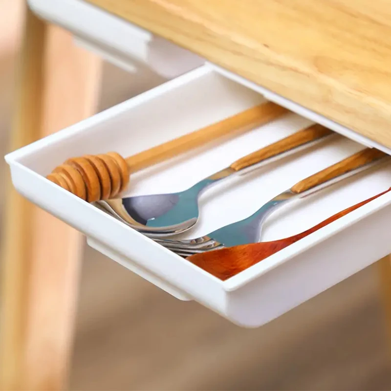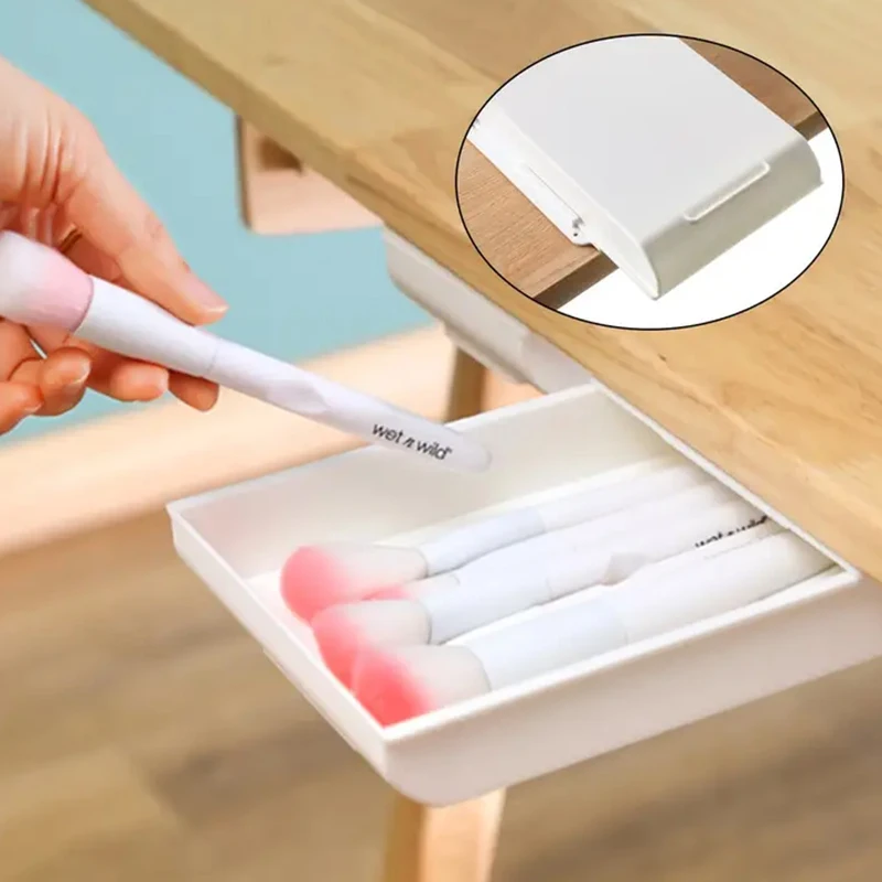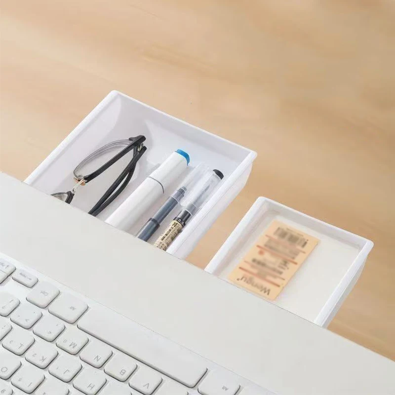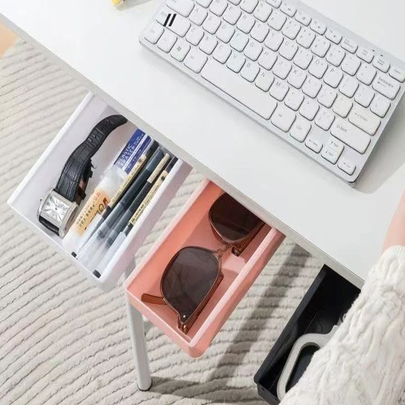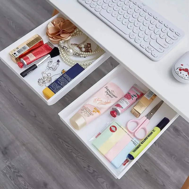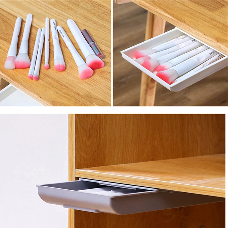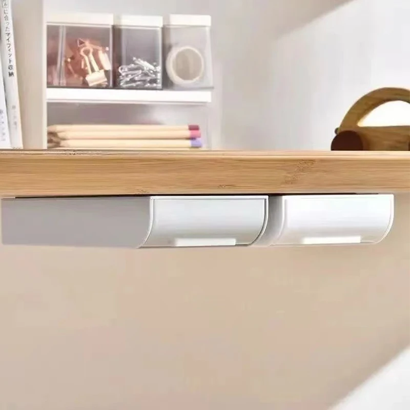 ลิ้นชักใต้โต๊ะ, พลาสติกใต้โต๊ะกล่องเก็บของ, ลิ้นชักโต๊ะแบบมีกาวในตัวที่ซ่อนอยู่สไลด์ออกใต้โต๊ะออแกไนเซอร์สำหรับสำนักงานบ้านตู้เสื้อผ้าเครื่องเขียนประหยัดพื้นที่