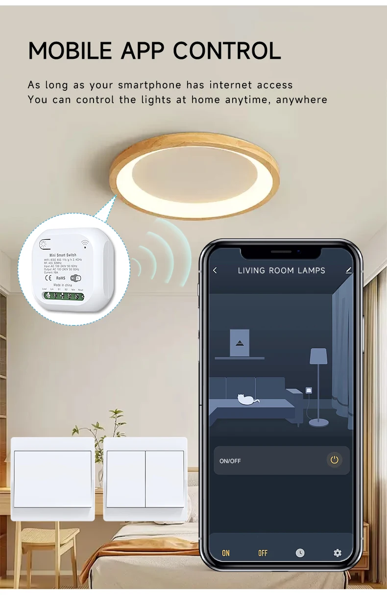 8.เครื่องรับได้รับการออกแบบให้มีขนาดเล็กและสามารถวางไว้ในกล่องด้านล่างของสวิตช์ได้นอกจากนี้ยังสามารถเสียบเข้าไปในท่อหลอดไฟเพื่อตอบสนองวิธีการยึดต่างๆ