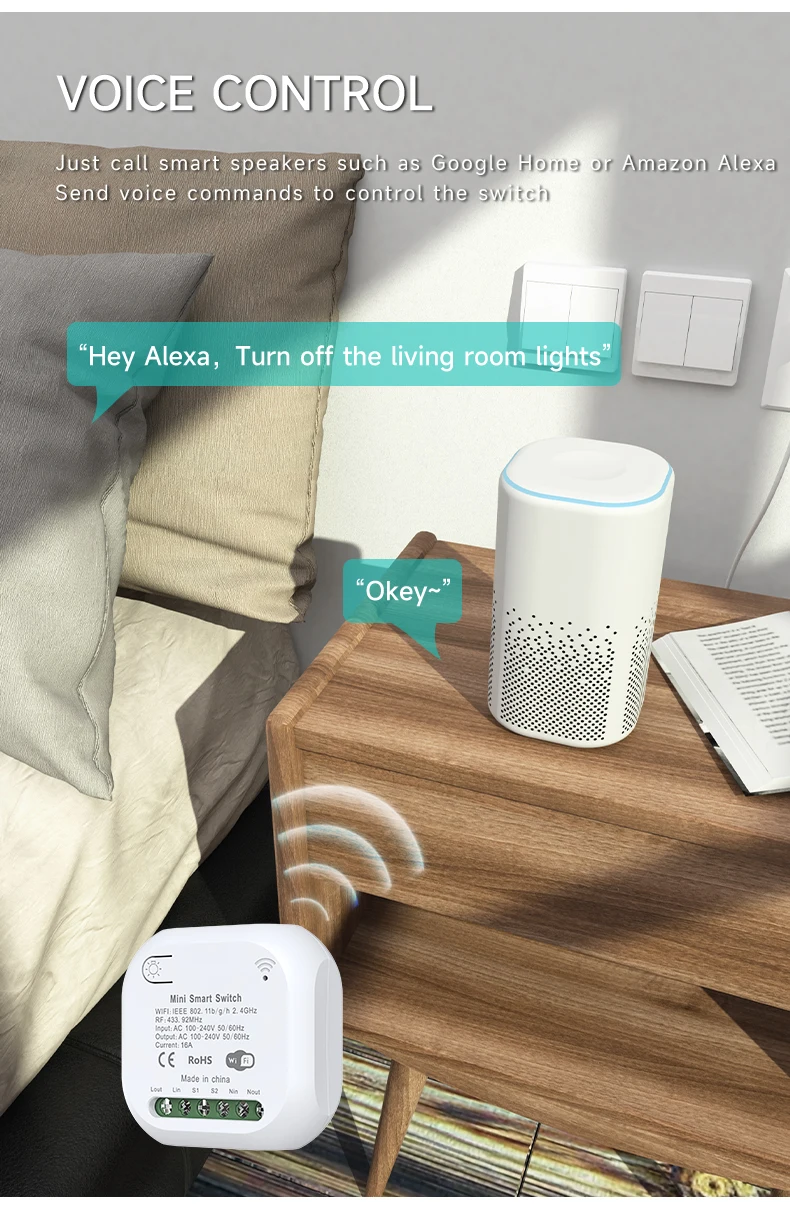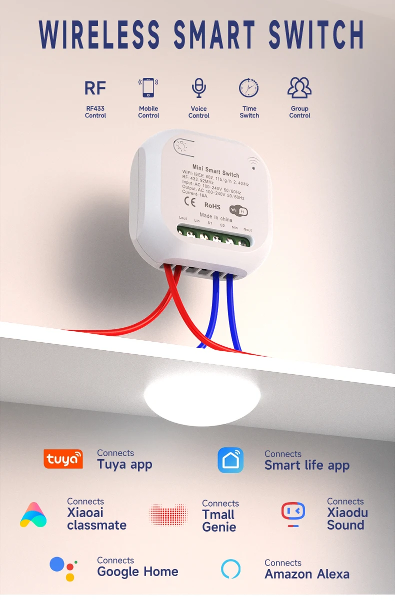 Tuya WiFi สมาร์ทผ้าม่านสวิทช์ลูกกลิ้งผ้าม่านชัตเตอร์โมดูล 433MHz RF รีโมทคอนโทรลทํางานร่วมกับ Alexa Google Home Assistant