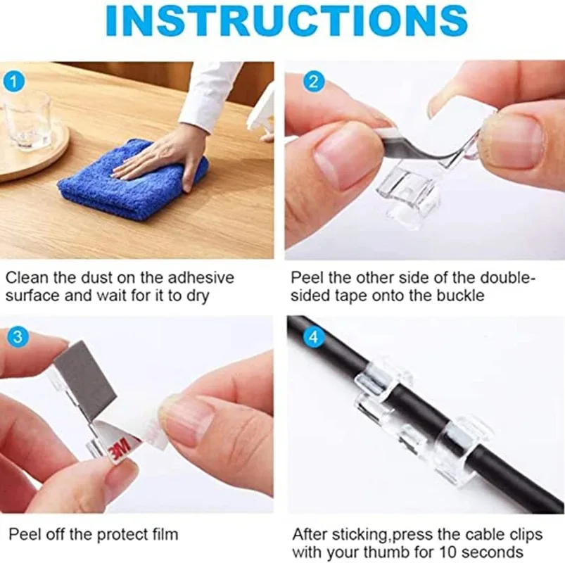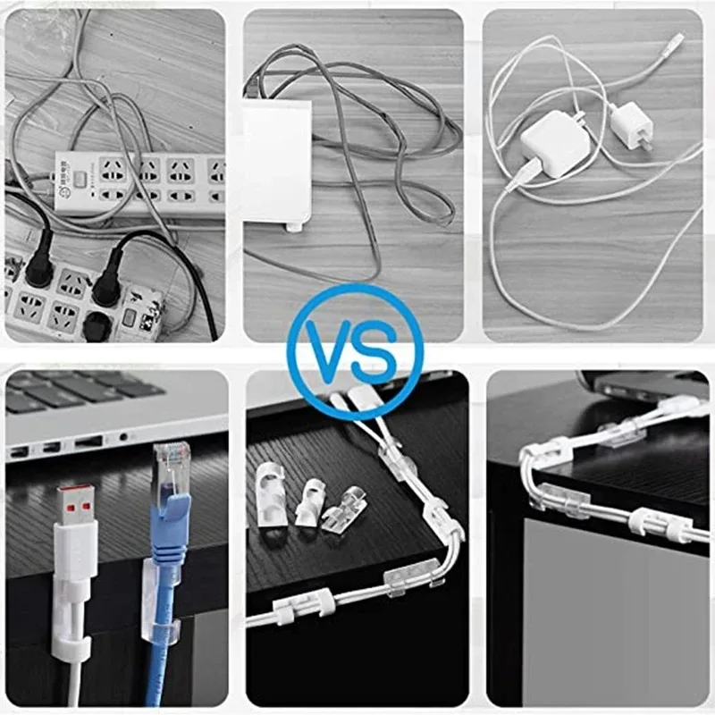 ตัวจัดที่หนีบสายไฟ20ชิ้นตัวจัดการสายไฟตัวยึดสายไฟแบบติดเองรอกเบ็ด