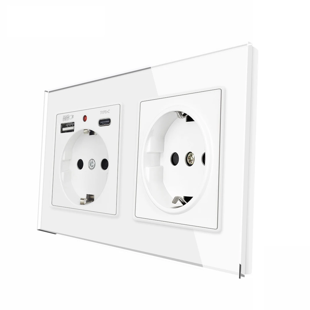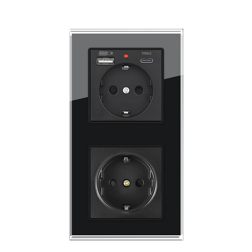 SRAN USB Wall SOCKET แนวตั้งการติดตั้ง EU 220V ปลั๊กคู่ 153*82 มม.กระจกนิรภัยแผงปลั๊กไฟฟ้าในตัว
