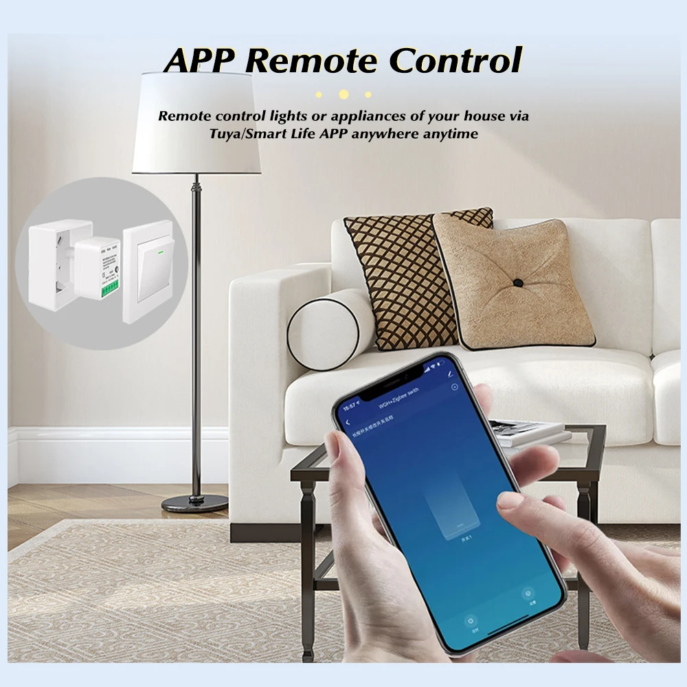 6. APP Remote Control–Remote control lights or appliances of your house via Tuya/Smart Life APP anywhere anytime.