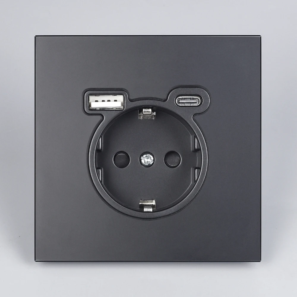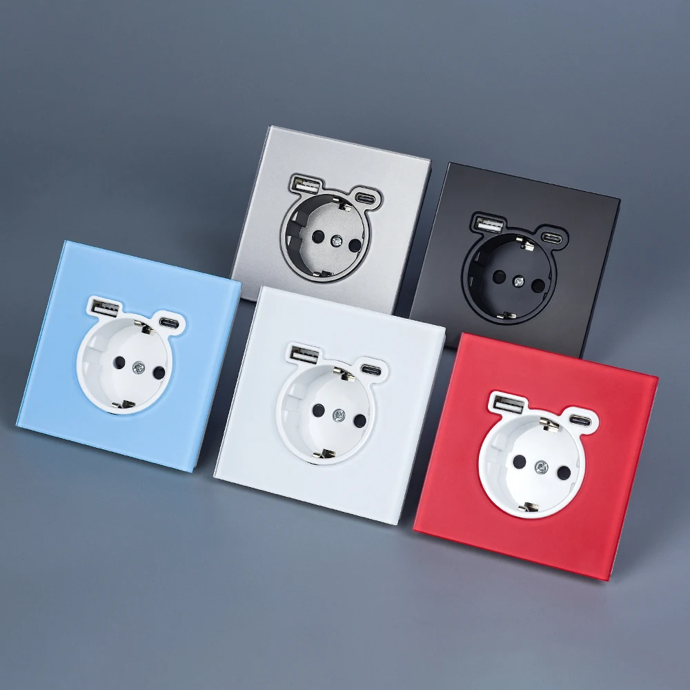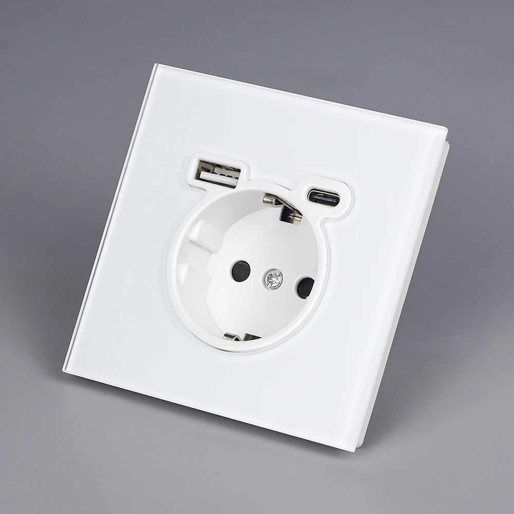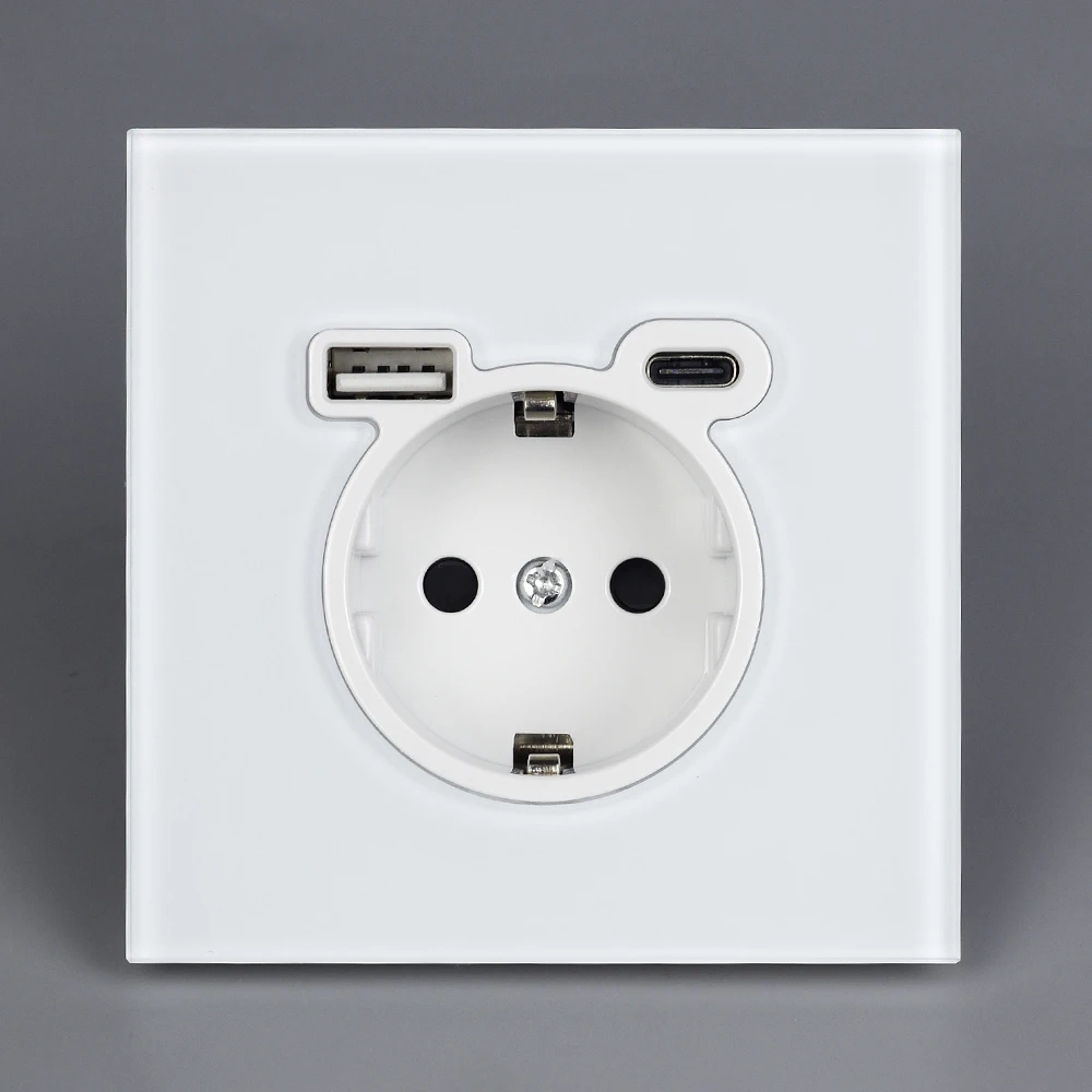 BSEED EU ซ็อกเก็ตผนัง Type-C USB Power Sockets คู่ซ็อกเก็ตไฟฟ้า Triple Outlets กรอบพลาสติกเยอรมนีซ็อกเก็ต Dual USB