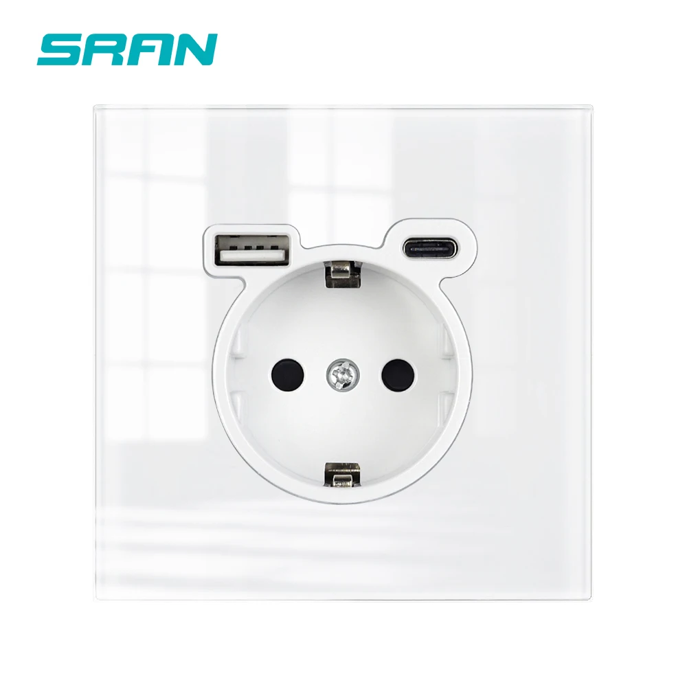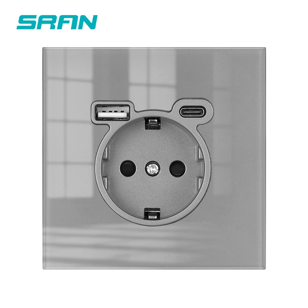 SRAN ปลั๊ก USB ครอบคลุมกระจกแผง 16A EU Wall ปลั๊กไฟฟ้าสําหรับ Home USB C ซ็อกเก็ต 5 V 2A
