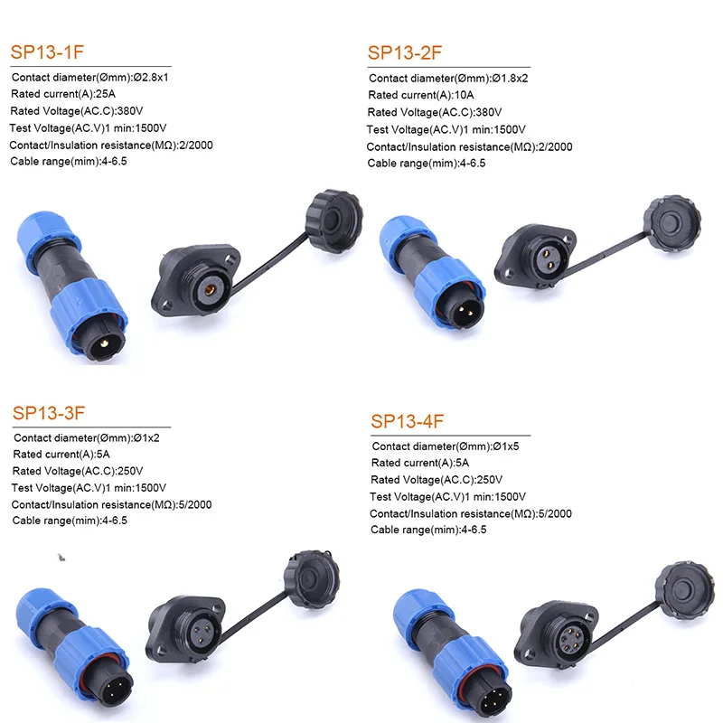 SP13 IP68 Flange Type Aviation Plug 1/2/3/4/5/6/7/9Pin Cable Connectors Plug And Socket Waterproof Connector