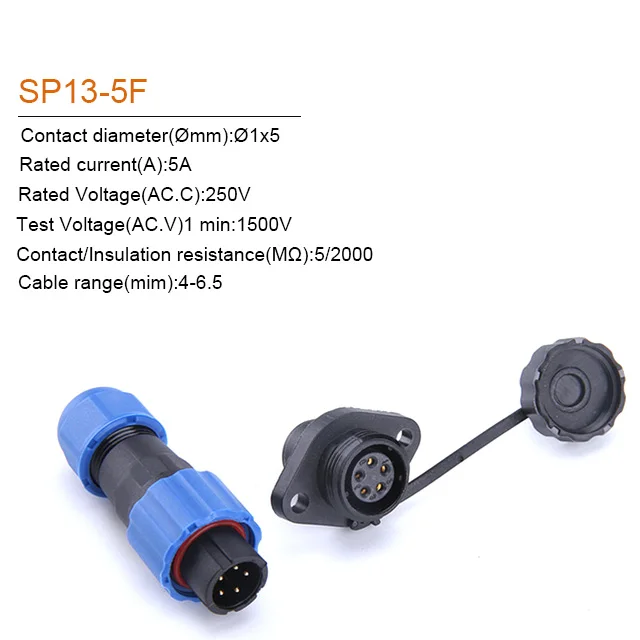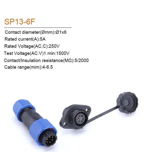 SP13 IP68 หน้าแปลนประเภทปลั๊ก 1/2/3/4/5/6/7/9Pin ตัวเชื่อมต่อสายเคเบิลปลั๊กและซ็อกเก็ตขั้วต่อกันน้ํา