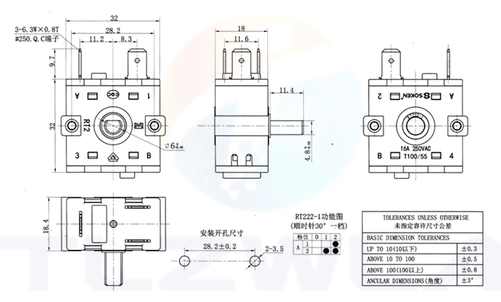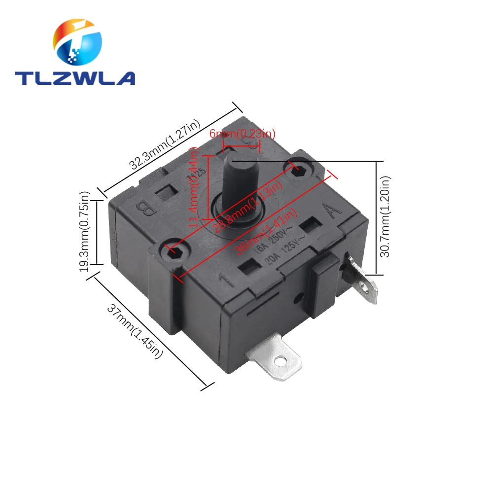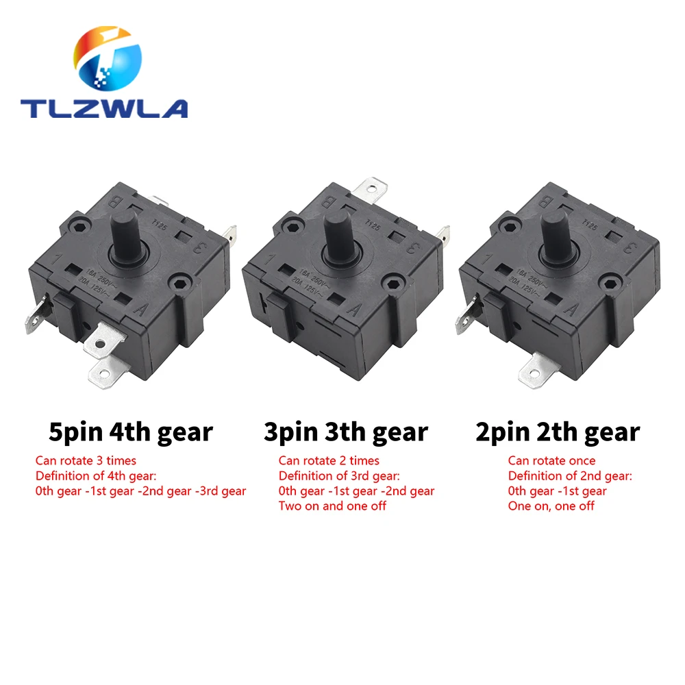 ห้องไฟฟ้าเครื่องทําความร้อนตําแหน่ง 2Pin 3Pin 5Pin ตัวเลือกสวิตช์หมุน AC 250V 16A หม้อน้ํา