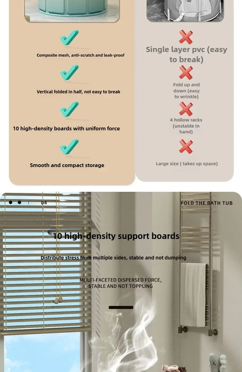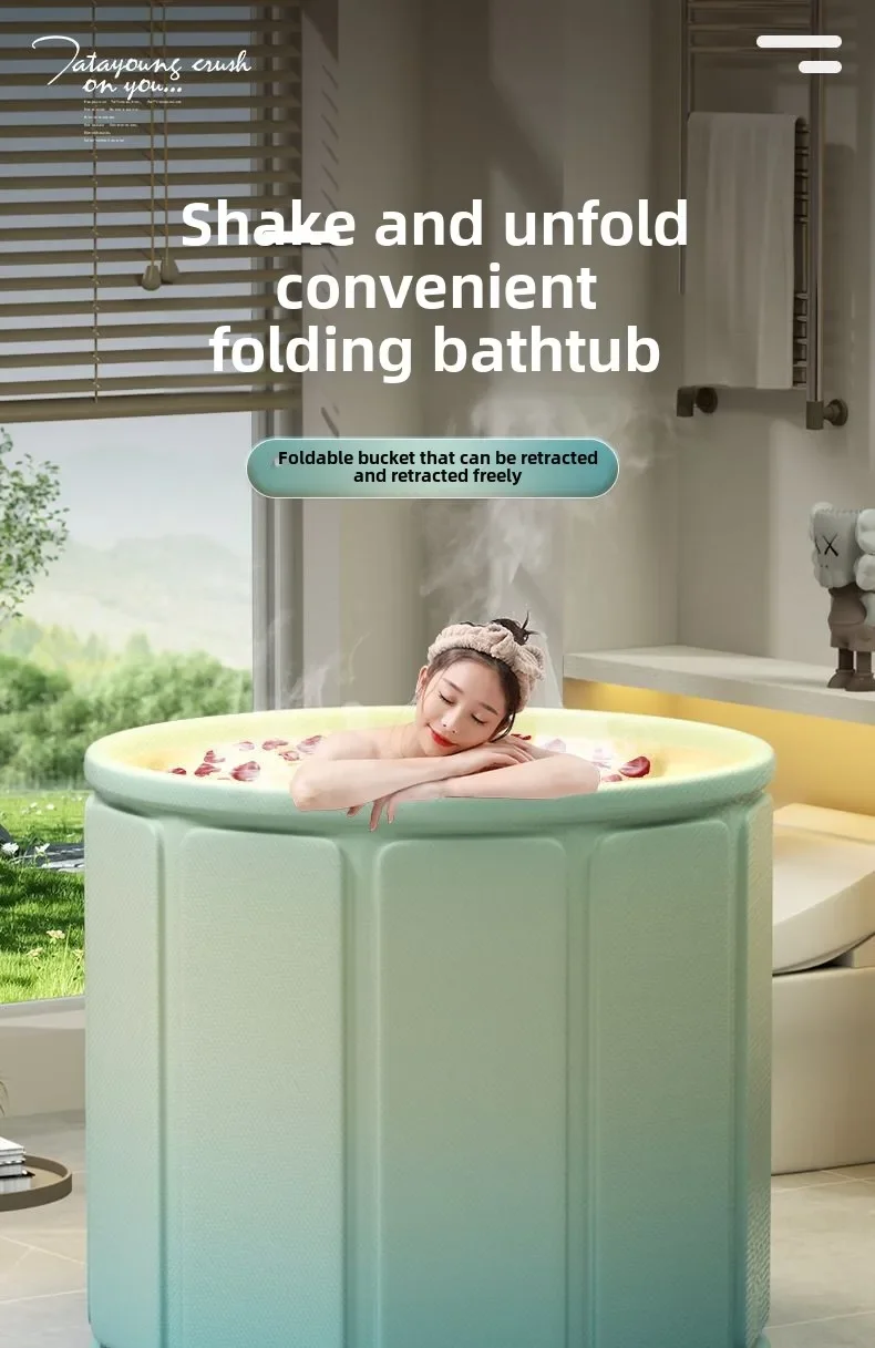 ผู้ใหญ่พับอ่างอาบน้ํา Full Body แช่ถังแบบพกพาออกแบบเด็กปลอดภัยนั่งสระว่ายน้ําสําหรับ Home Spa ว่ายน้ํา