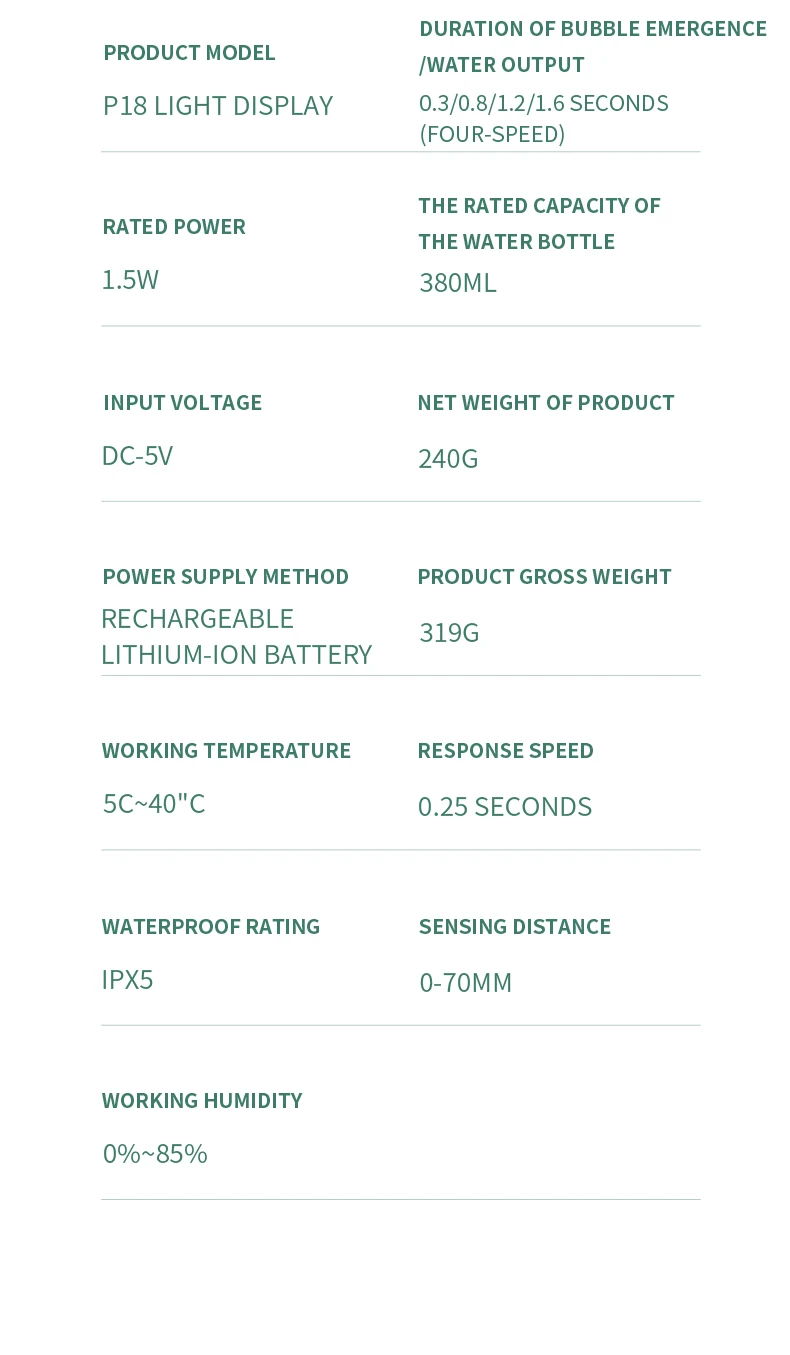 เทคโนโลยีเซ็นเซอร์อัจฉริยะ: P18 ใช้เซ็นเซอร์ตรวจจับความเคลื่อนไหวอินฟราเรดเพื่อตรวจจับมือของคุณ มอบประสบการณ์การจ่ายสบู่อัตโนมัติและไม่ต้องสัมผัสเพื่อความสะดวกและสุขอนามัยสูงสุด