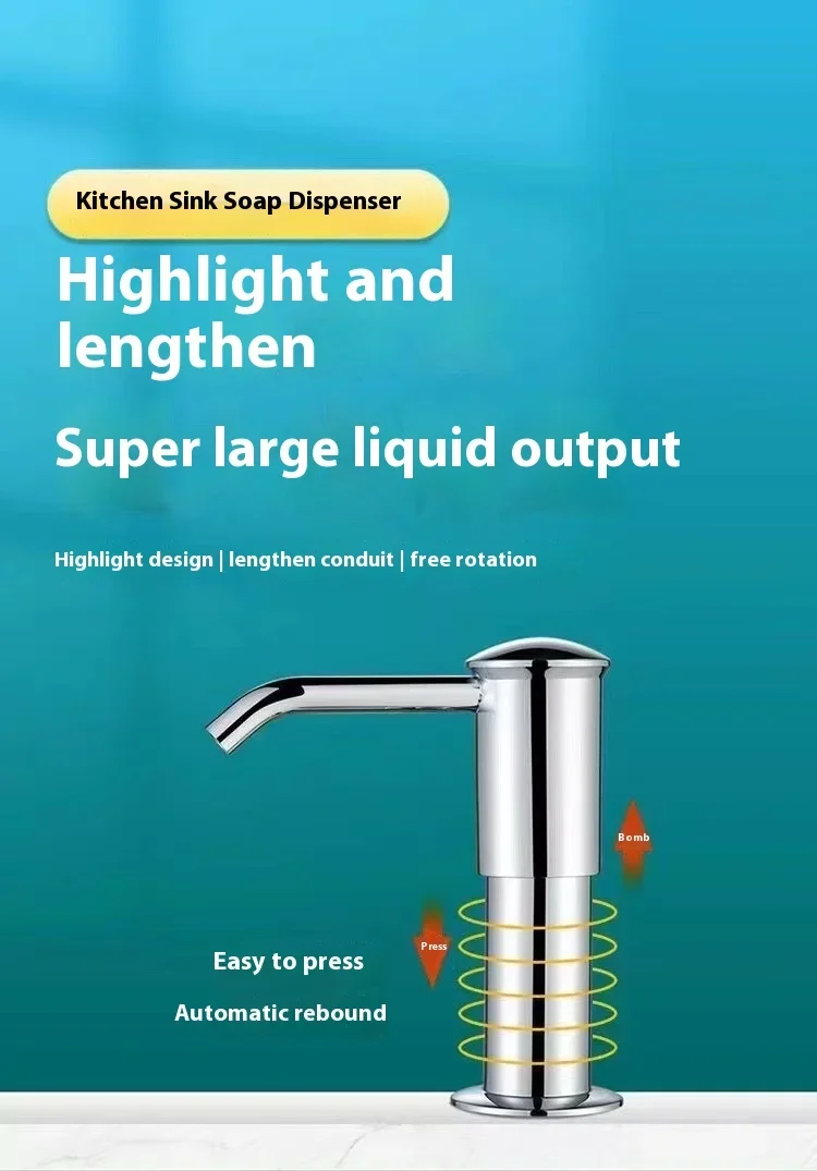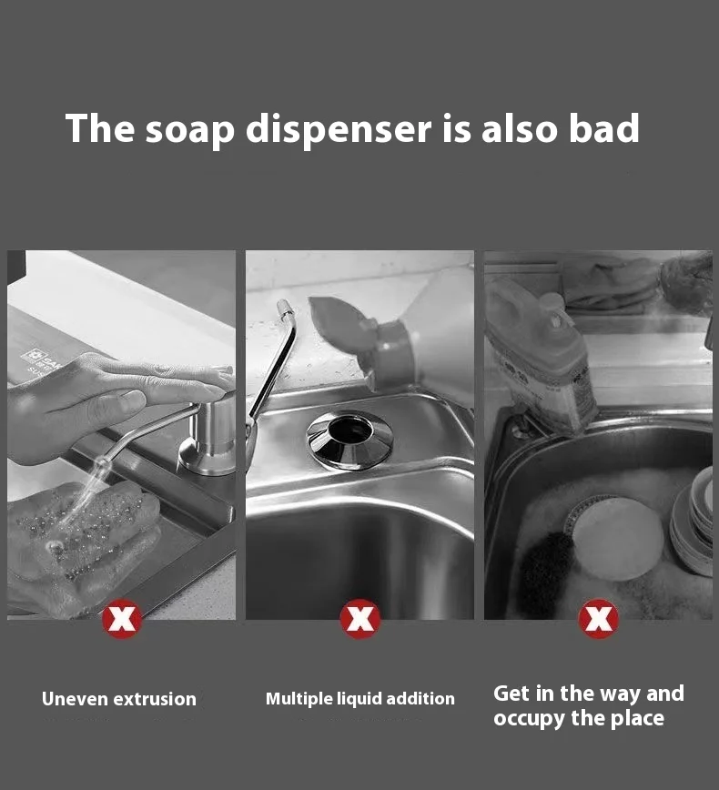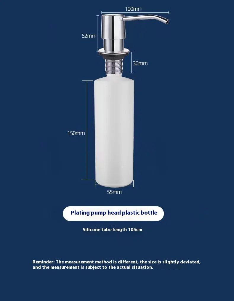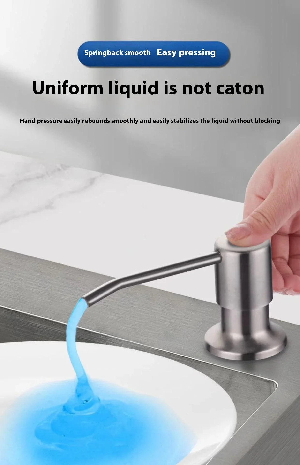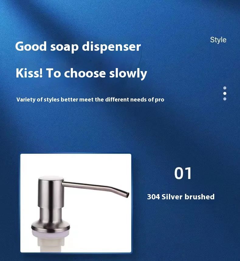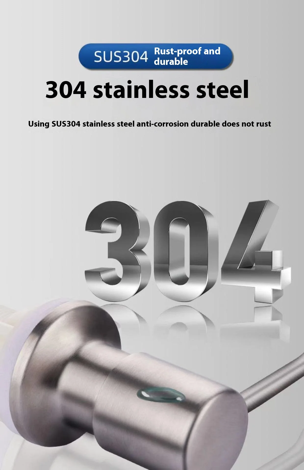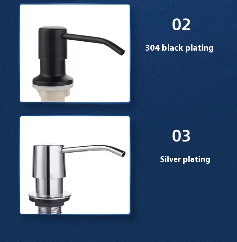ชื่อสินค้า: เครื่องจ่ายสบู่อ่างล้างจานสแตนเลส 304 พร้อมท่อต่อขยาย – ไม่ต้องเติม ใช้งานได้กับขวดน้ำยาทำความสะอาดทุกประเภท