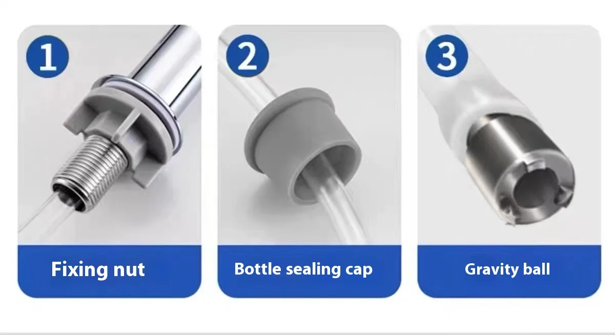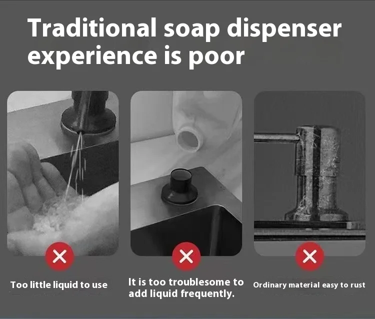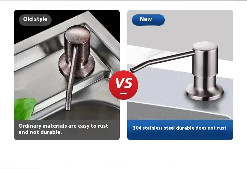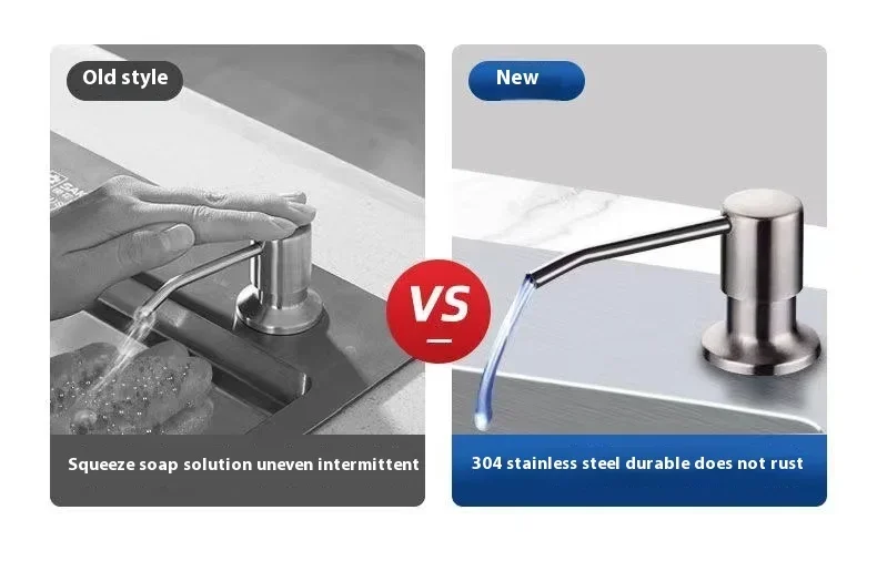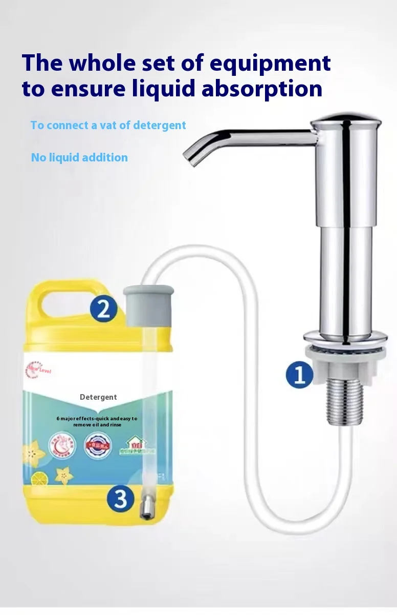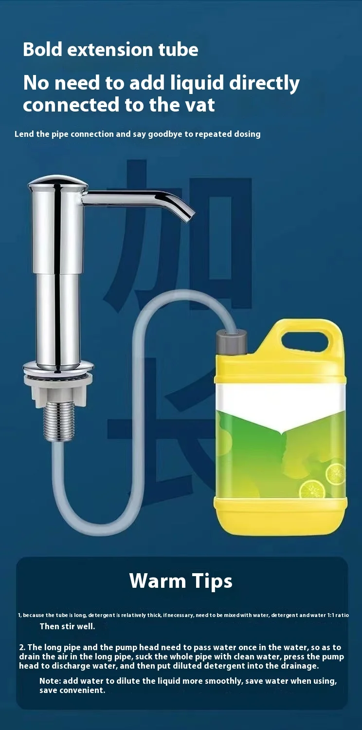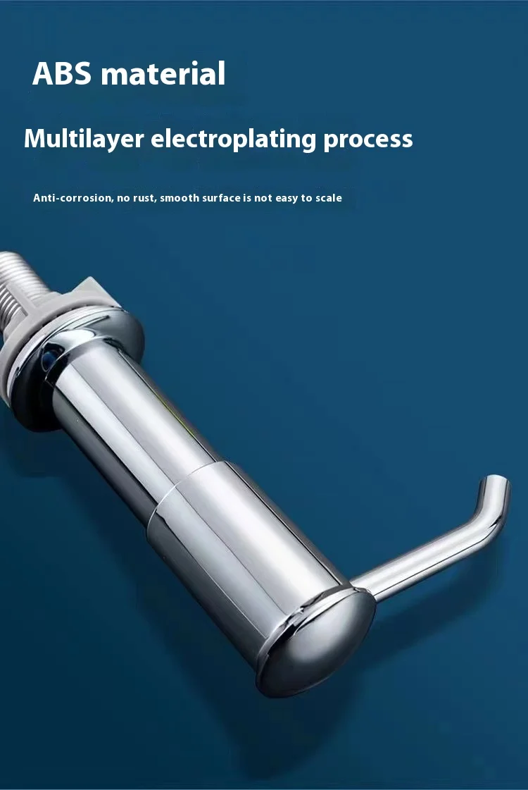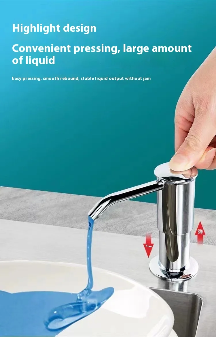 ชื่อสินค้า: เครื่องจ่ายสบู่อ่างล้างจานสแตนเลส 304 พร้อมท่อต่อขยาย – ไม่ต้องเติม ใช้งานได้กับขวดน้ำยาทำความสะอาดทุกประเภท