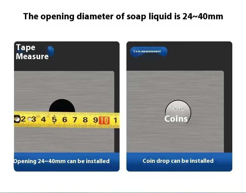 เหมาะกับรูอ่างล้างจานขนาด 24–40 มม. (วัดด้วยเหรียญ: หากใส่เหรียญ ¥1 ได้ แสดงว่าสามารถใช้งานร่วมกันได้)