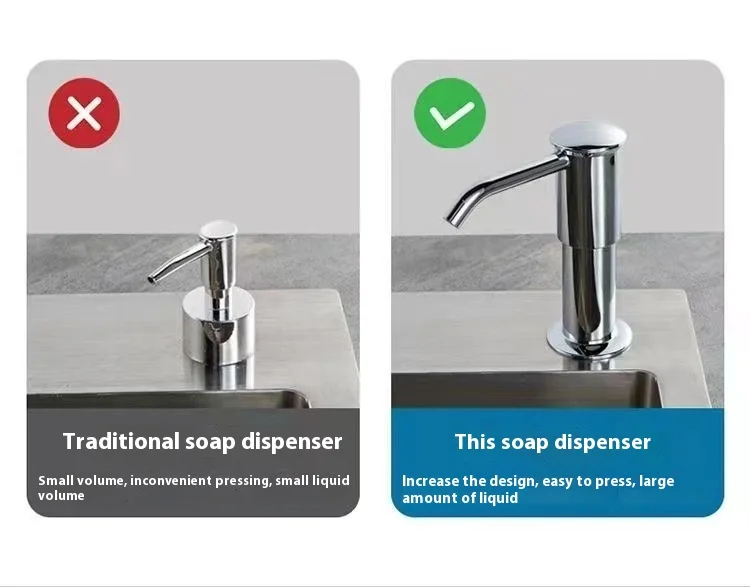 ตู้กดน้ำล้างมือเครื่องจ่ายสบู่เหลวสำหรับเคาน์เตอร์ห้องน้ำเครื่องจ่ายสบู่เหลวล้างจานสำหรับห้องครัว