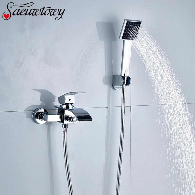 อ่างอาบน้ำฝักบัวโครเมียมก๊อกน้ำร้อนและเย็นติดผนังอ่างอาบน้ำก๊อกน้ำฝักบัวฝักบัวมือสเปรย์อ่างอาบน้ำไหลทิ้ง