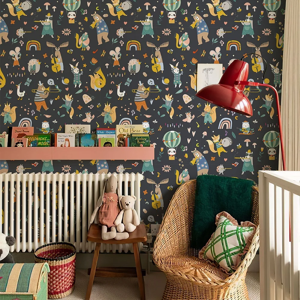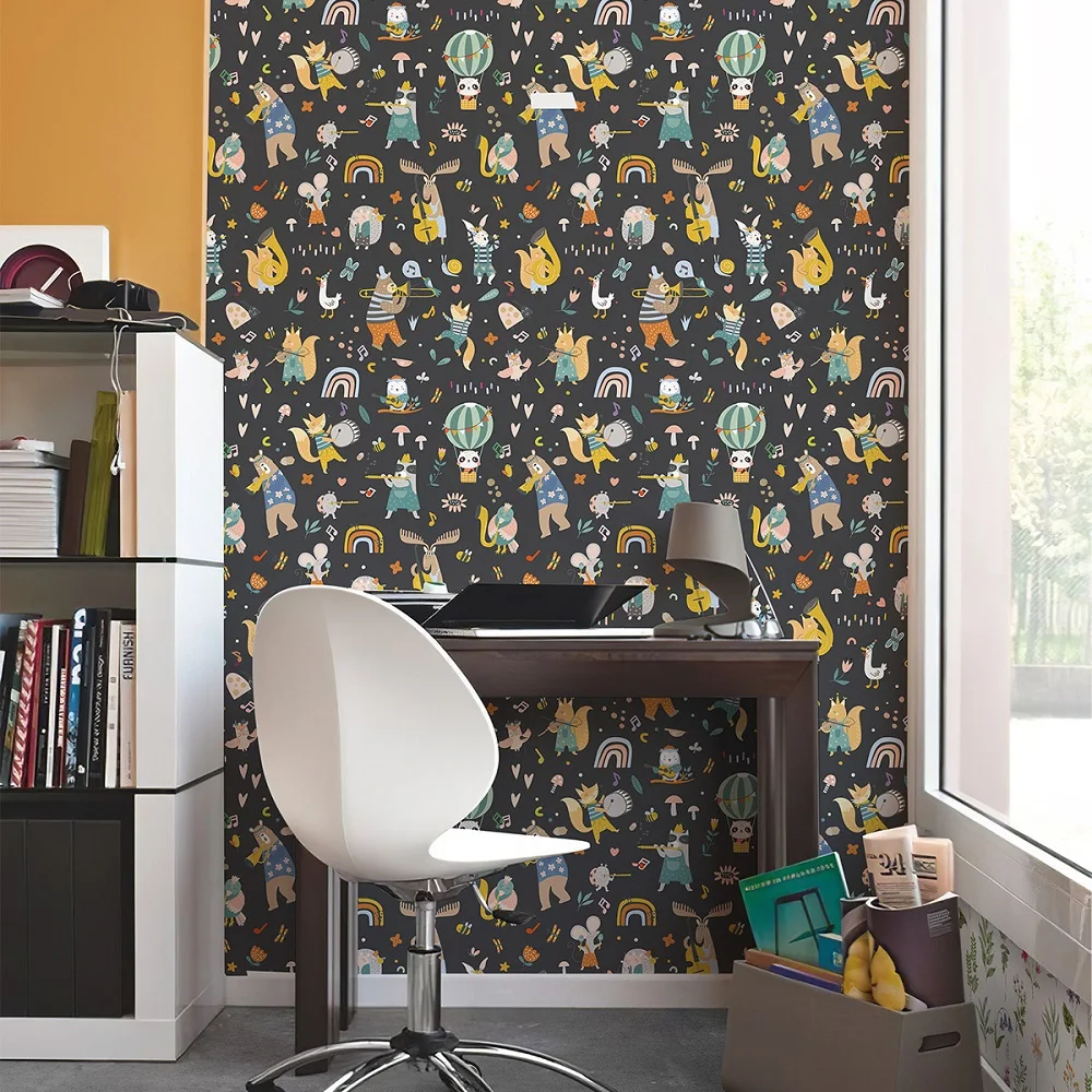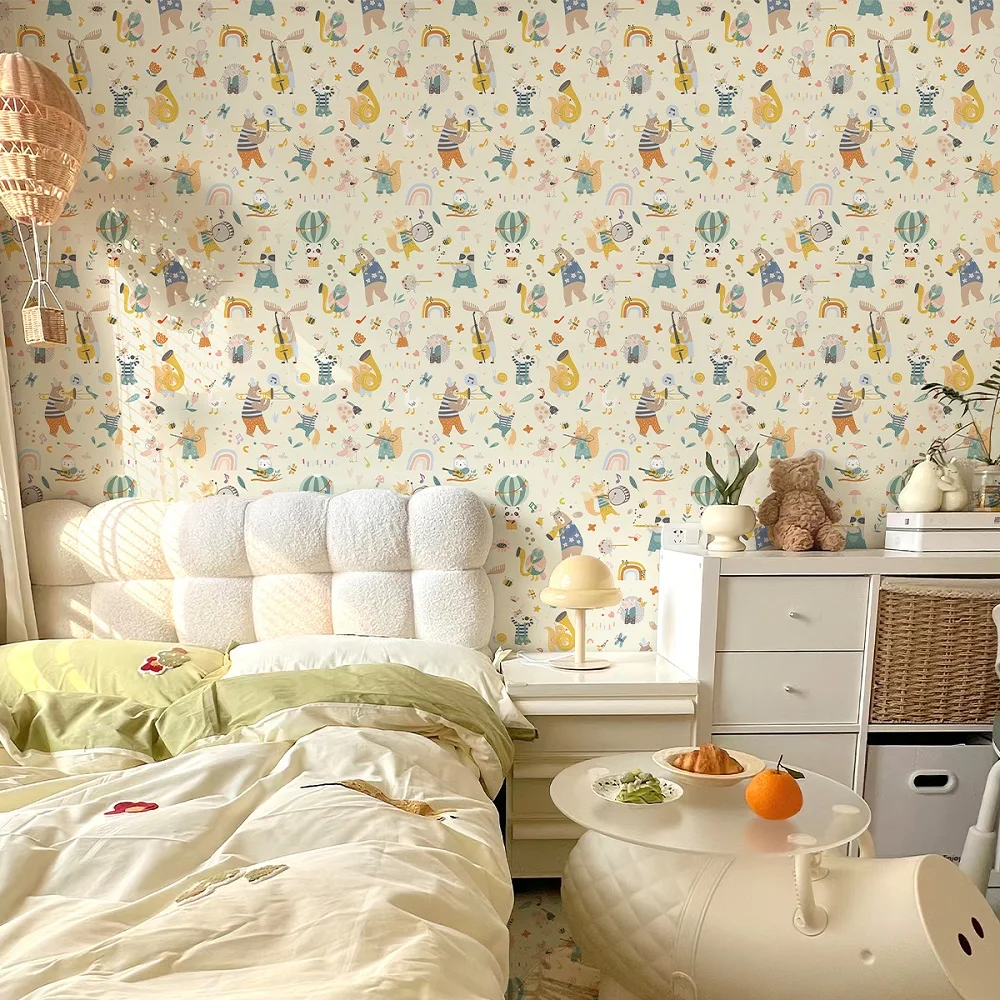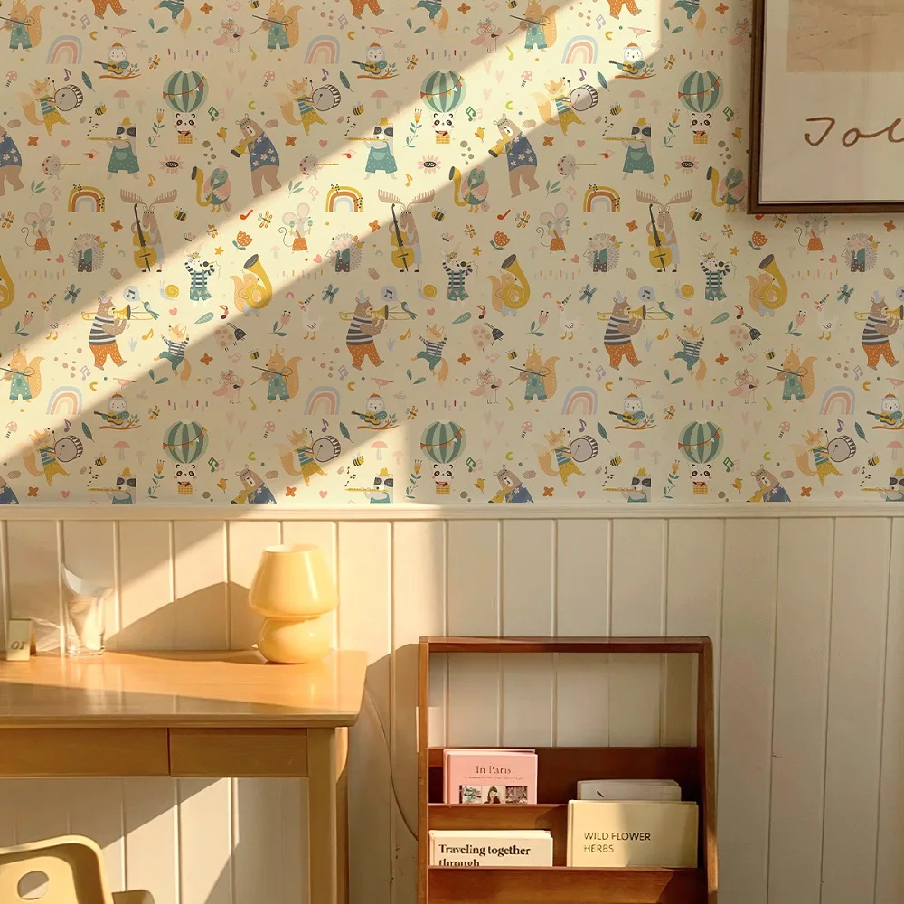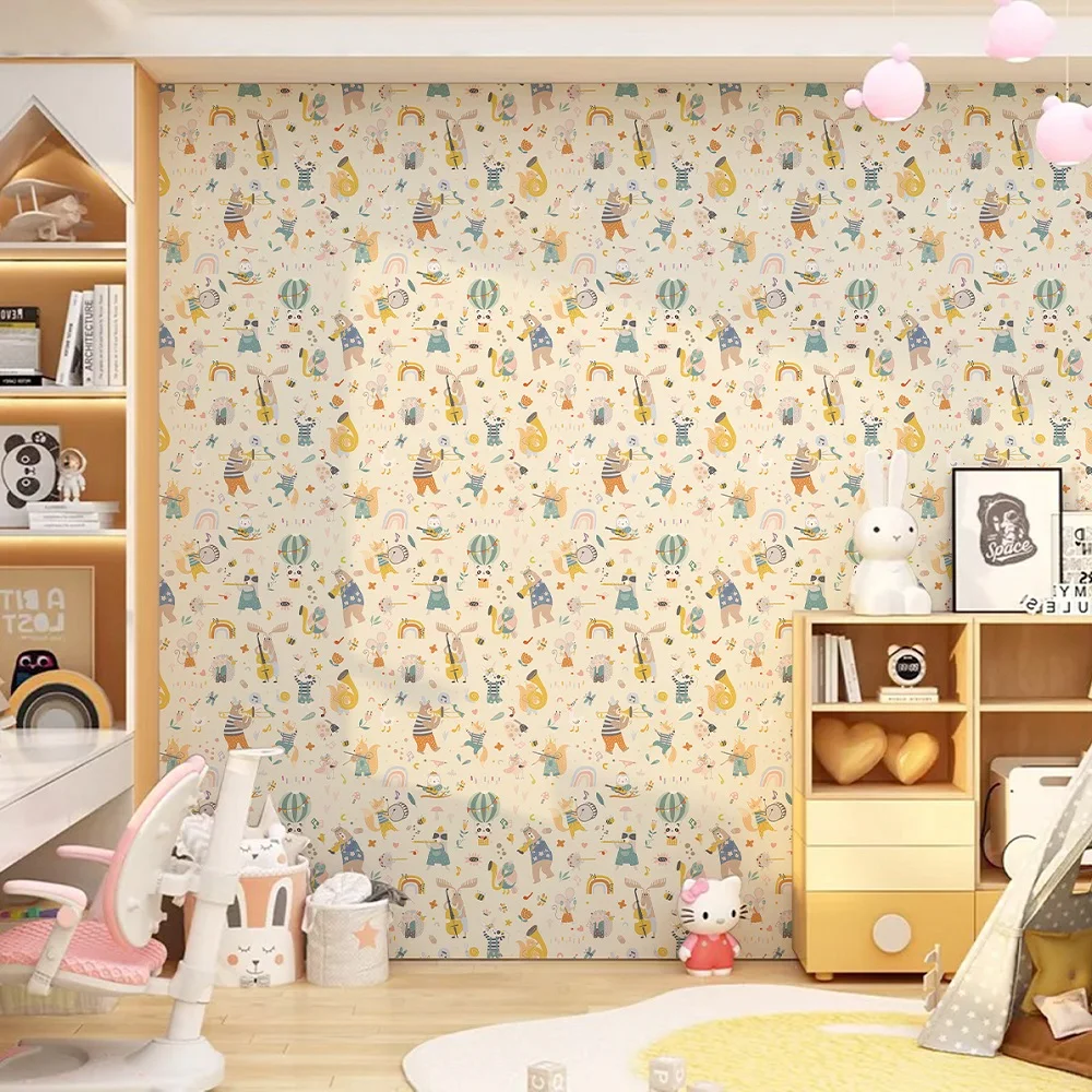 การ์ตูนสัตว์วอลล์เปเปอร์ห้องนอนเด็กน่ารัก Self-กาววอลเปเปอร์กันน้ํา Peel และ Stick เฟอร์นิเจอร์สติกเกอร์ตกแต่งบ้าน