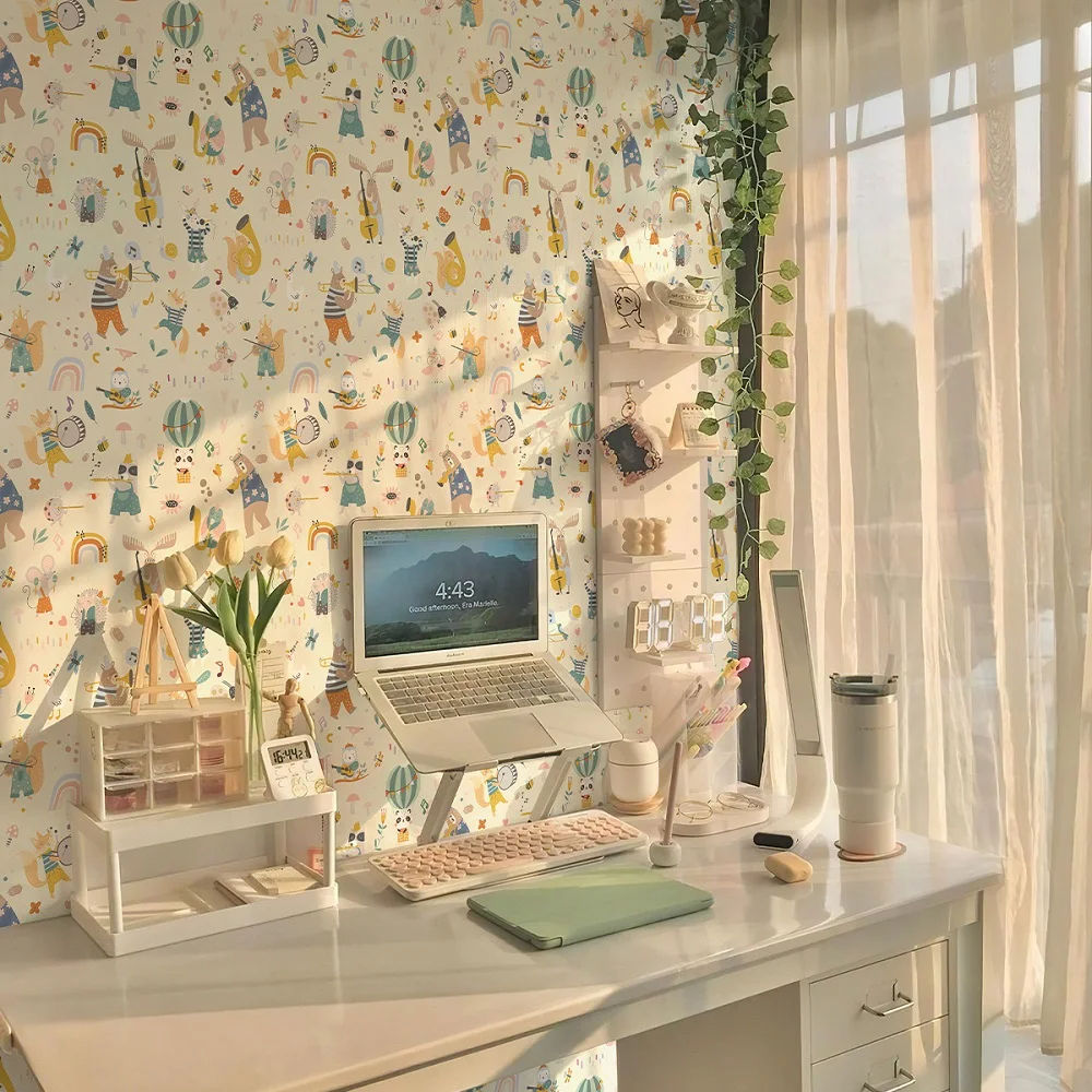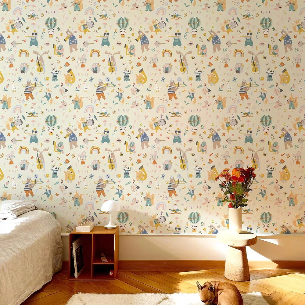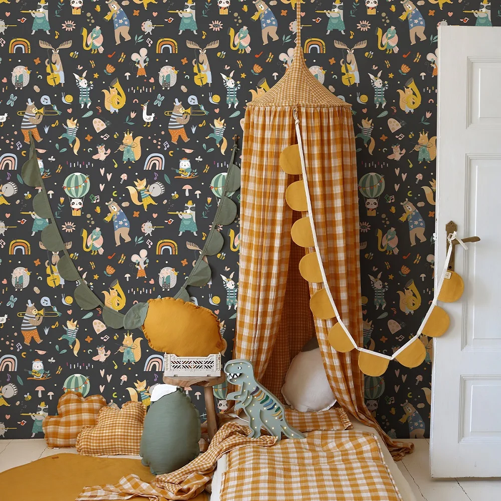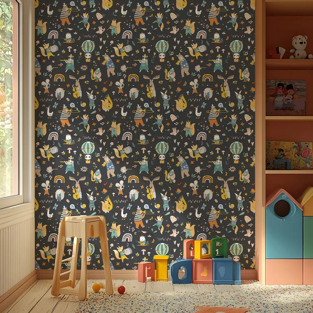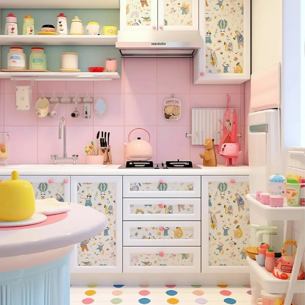 การ์ตูนสัตว์วอลล์เปเปอร์ห้องนอนเด็กน่ารัก Self-กาววอลเปเปอร์กันน้ํา Peel และ Stick เฟอร์นิเจอร์สติกเกอร์ตกแต่งบ้าน