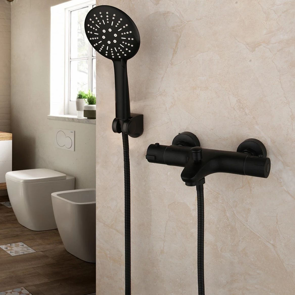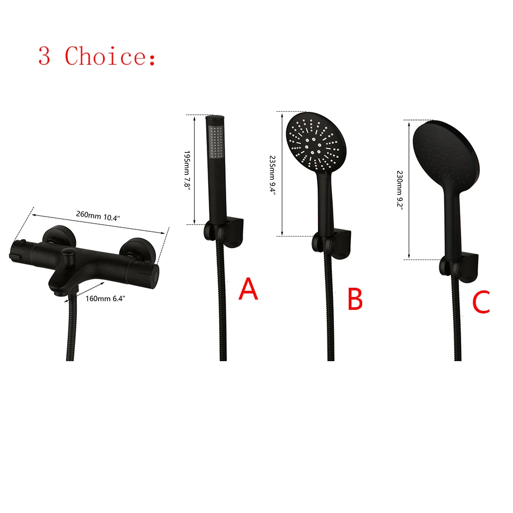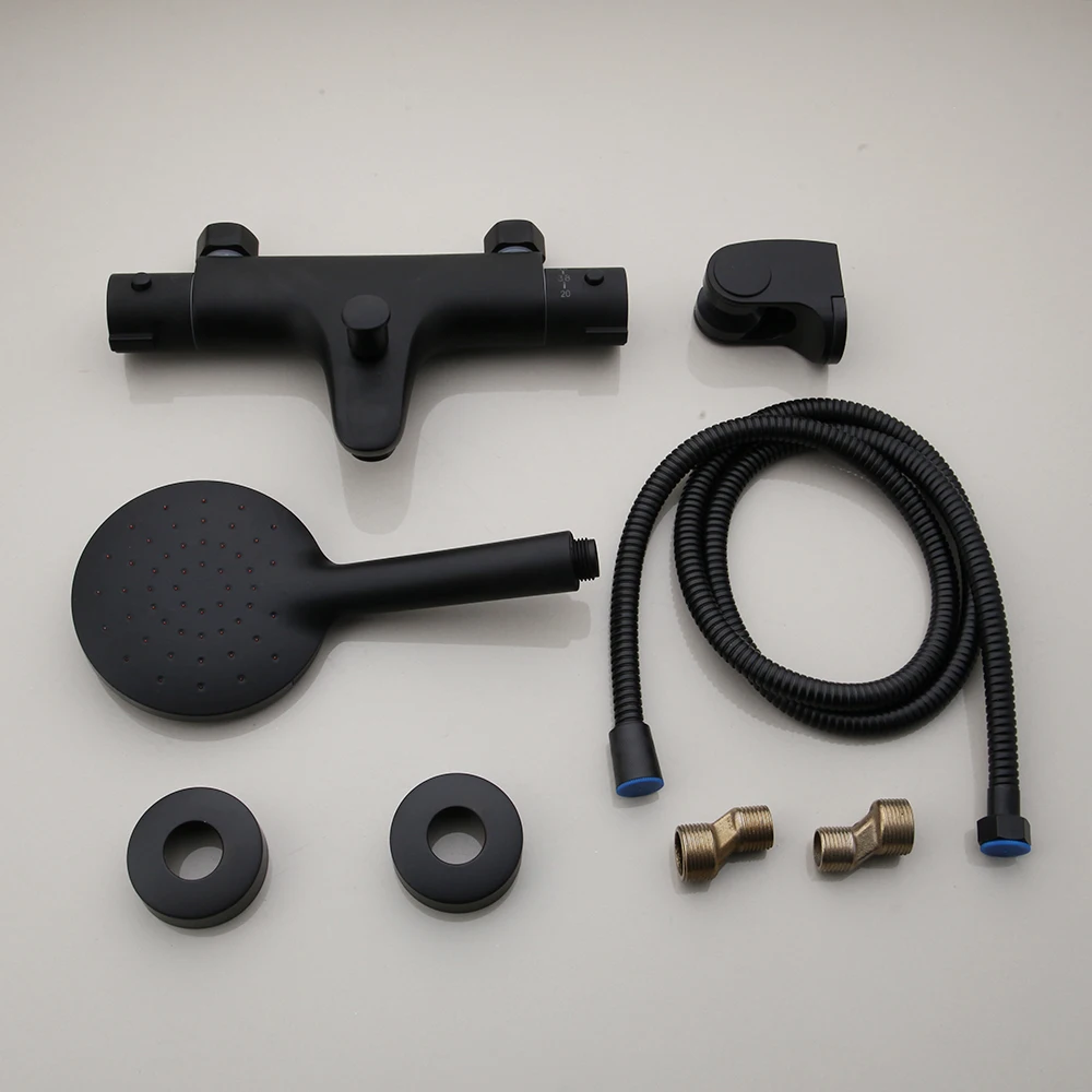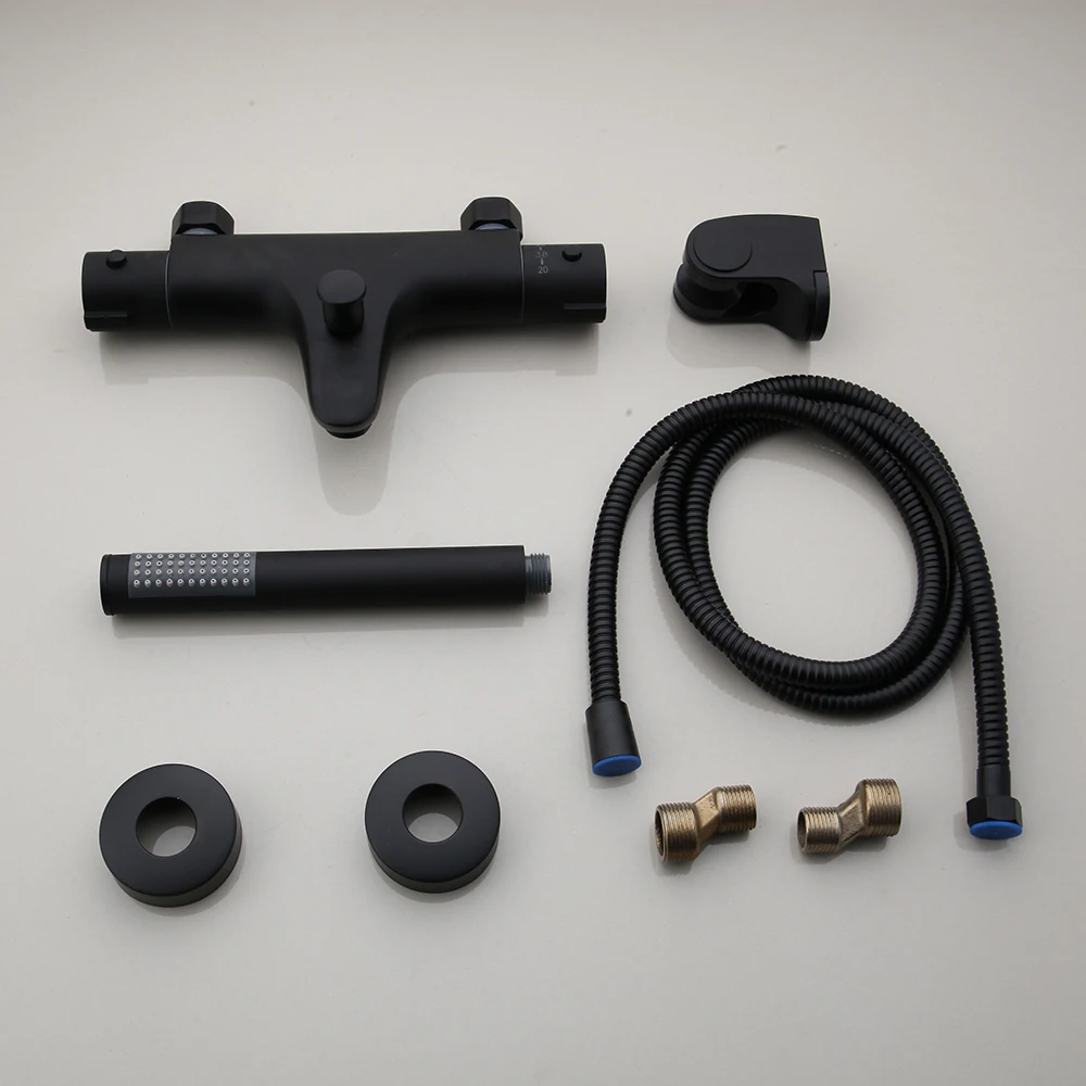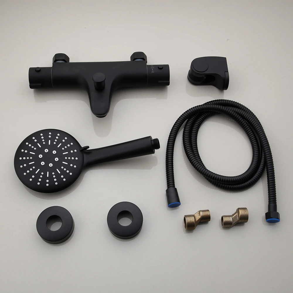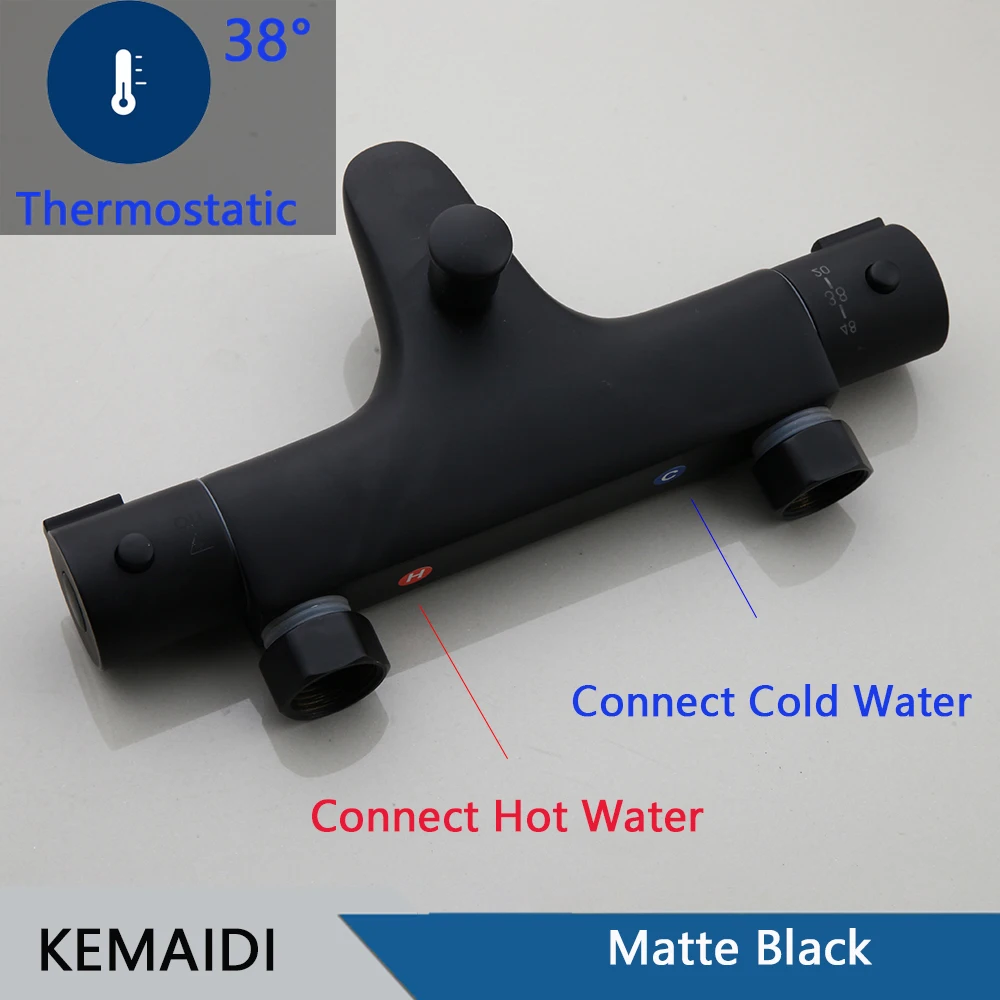 KEMAIDI Matte สีดำอ่างอาบน้ำก๊อกน้ำ Thermostatic Mixer ก๊อกน้ำฝักบัวอาบน้ำอุณหภูมิคงที่ TAP Handheld Bath ชุดฝักบัว