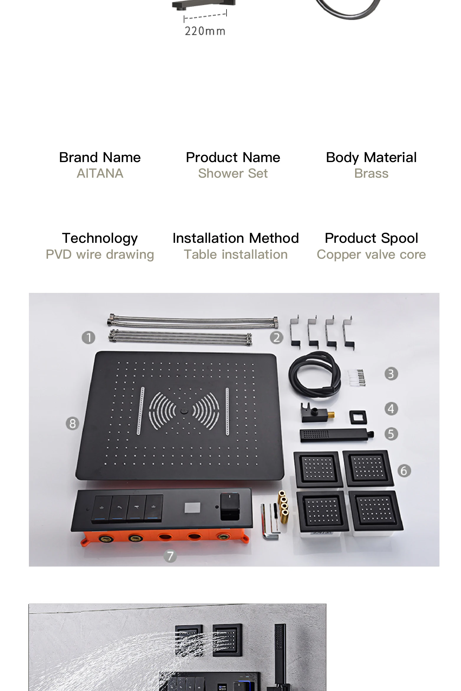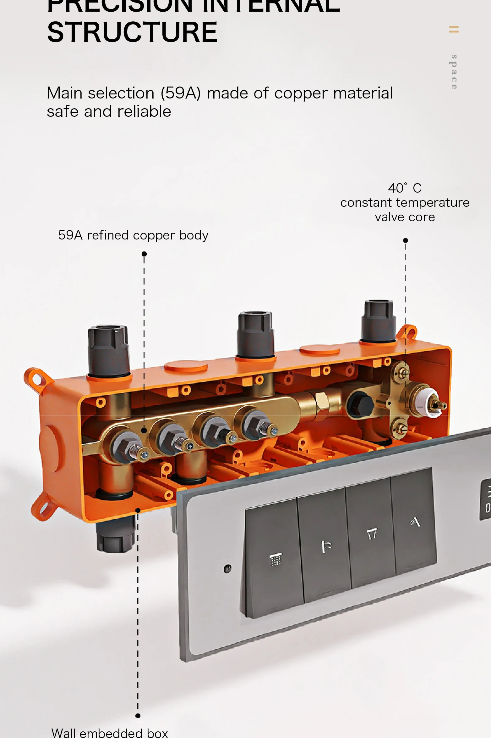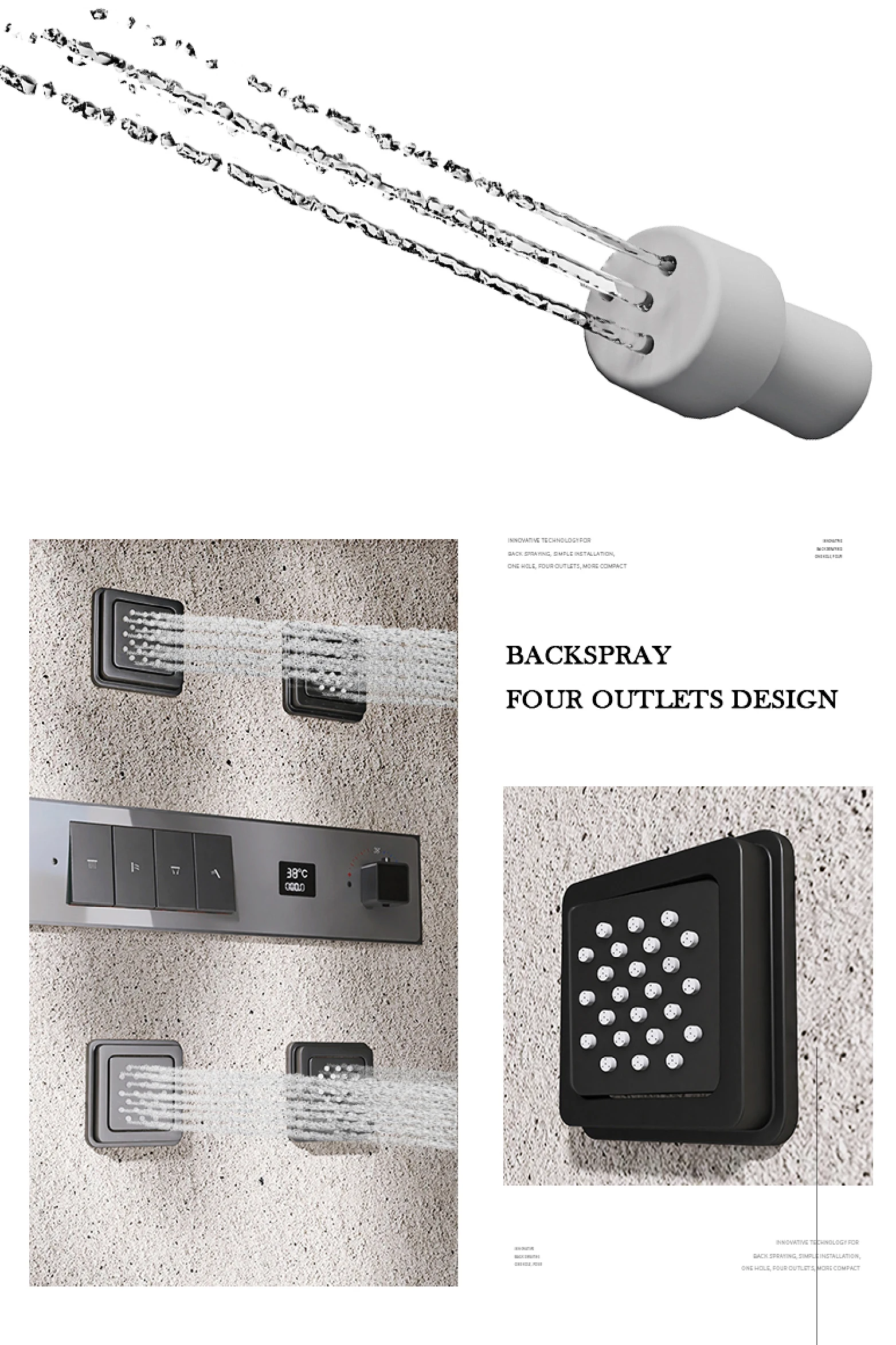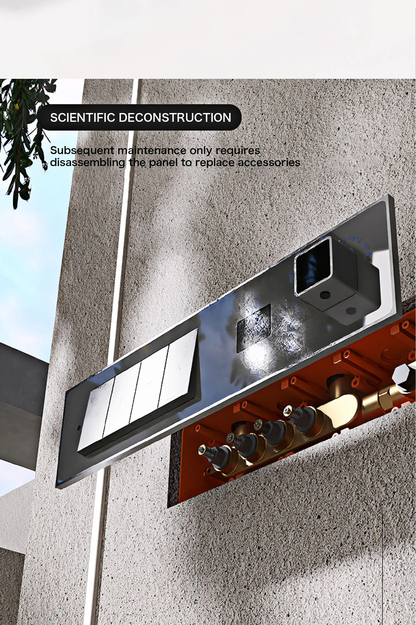 ระบบฝักบัวอาบน้ำทองเหลืองสีดำหรูหรา LED การออกแบบจอแสดงผลดิจิตอลฝักบัวติดผนังแบบร้อนและน้ำเย็นผสมในห้องน้ำ