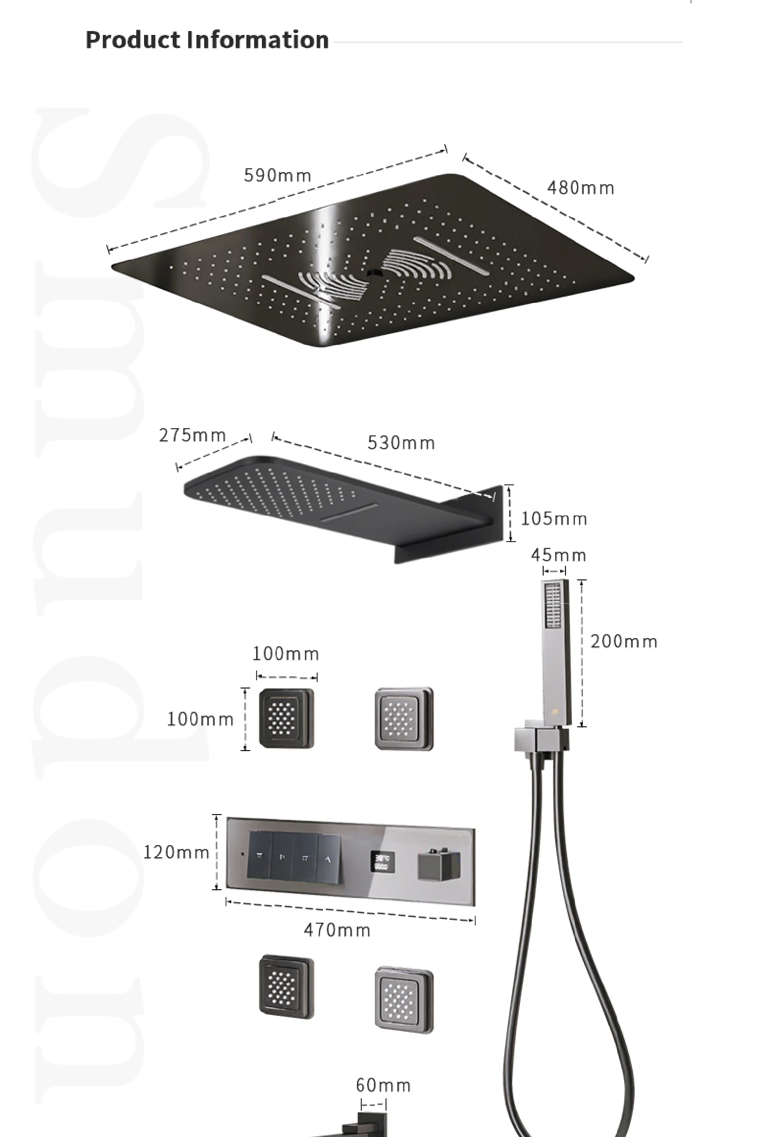 ชุดฝักบัว/ 59A ตัวเครื่องทำจากทองแดงอย่างดี 4 รูปแบบการจ่ายน้ำ และฟังก์ชั่นเพิ่มแรงดันอากาศ ฝักบัวพร้อมหัวฉีดแบบสเปรย์ด้านบน