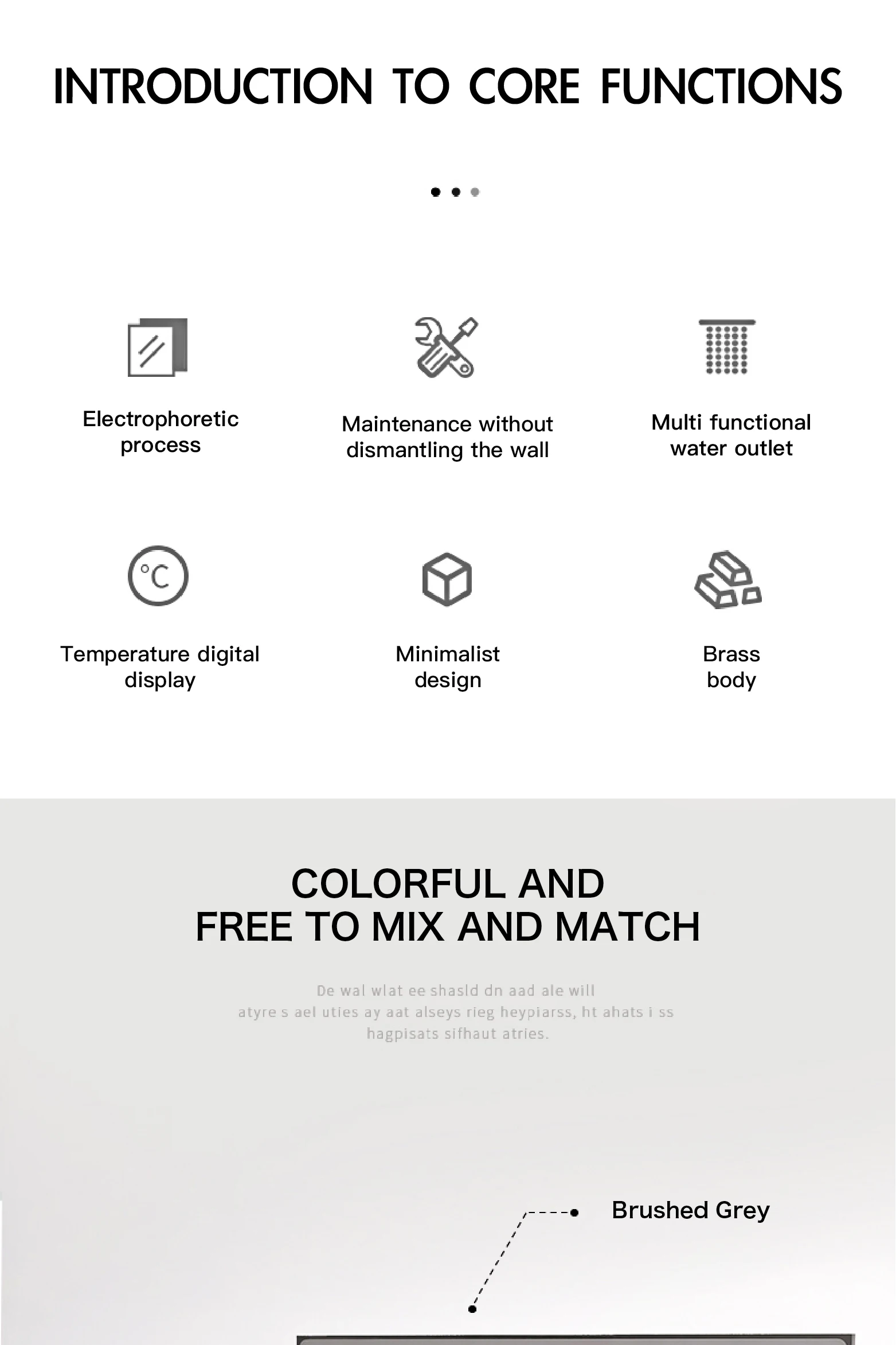 สมาร์ทดิจิตอลสายฝนห้องน้ําชุดฝักบัวแสดงอุณหภูมิห้องน้ําก๊อกน้ําชุดสีเทาระบบฝักบัว Ambient Light