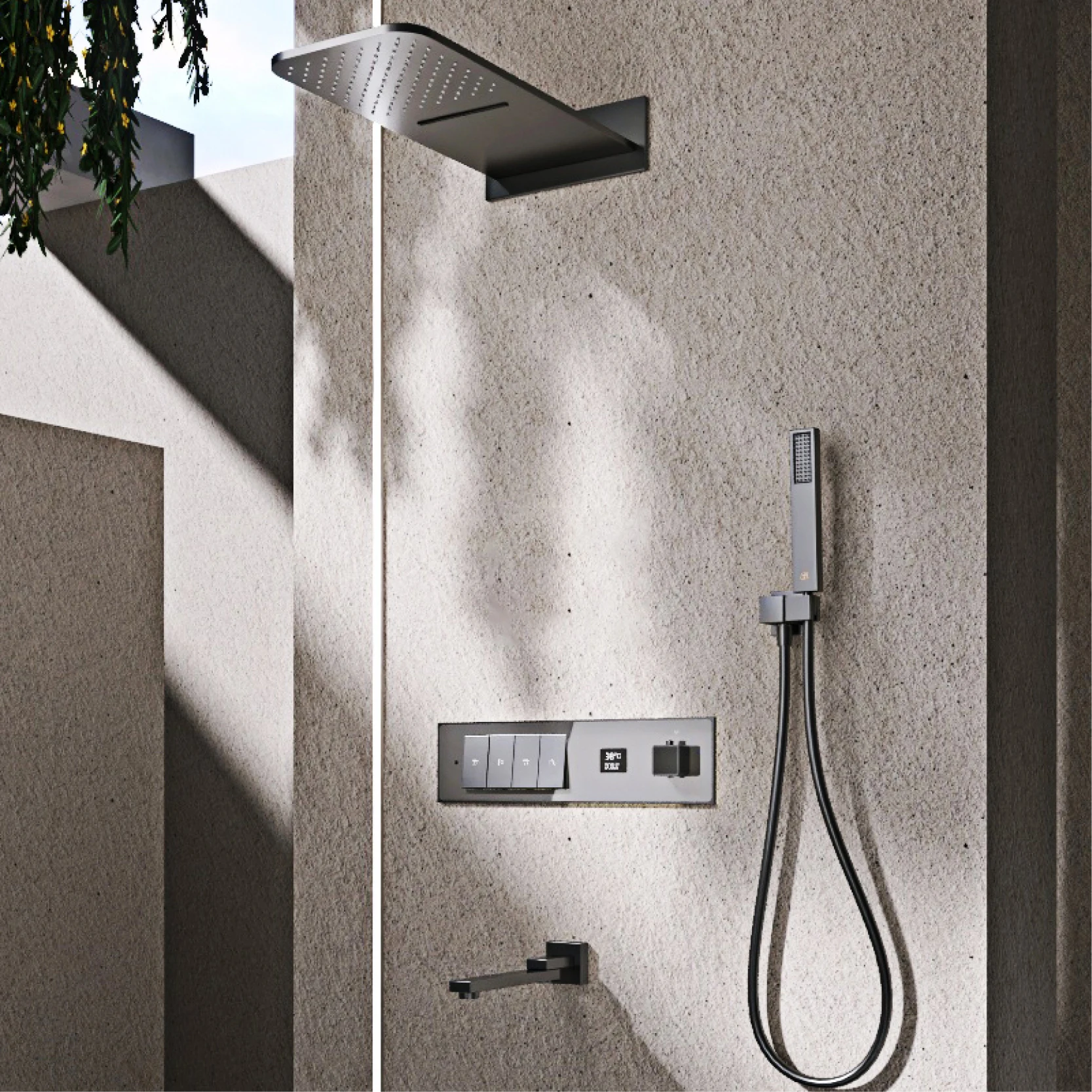สมาร์ทดิจิตอลสายฝนห้องน้ําชุดฝักบัวแสดงอุณหภูมิห้องน้ําก๊อกน้ําชุดสีเทาระบบฝักบัว Ambient Light