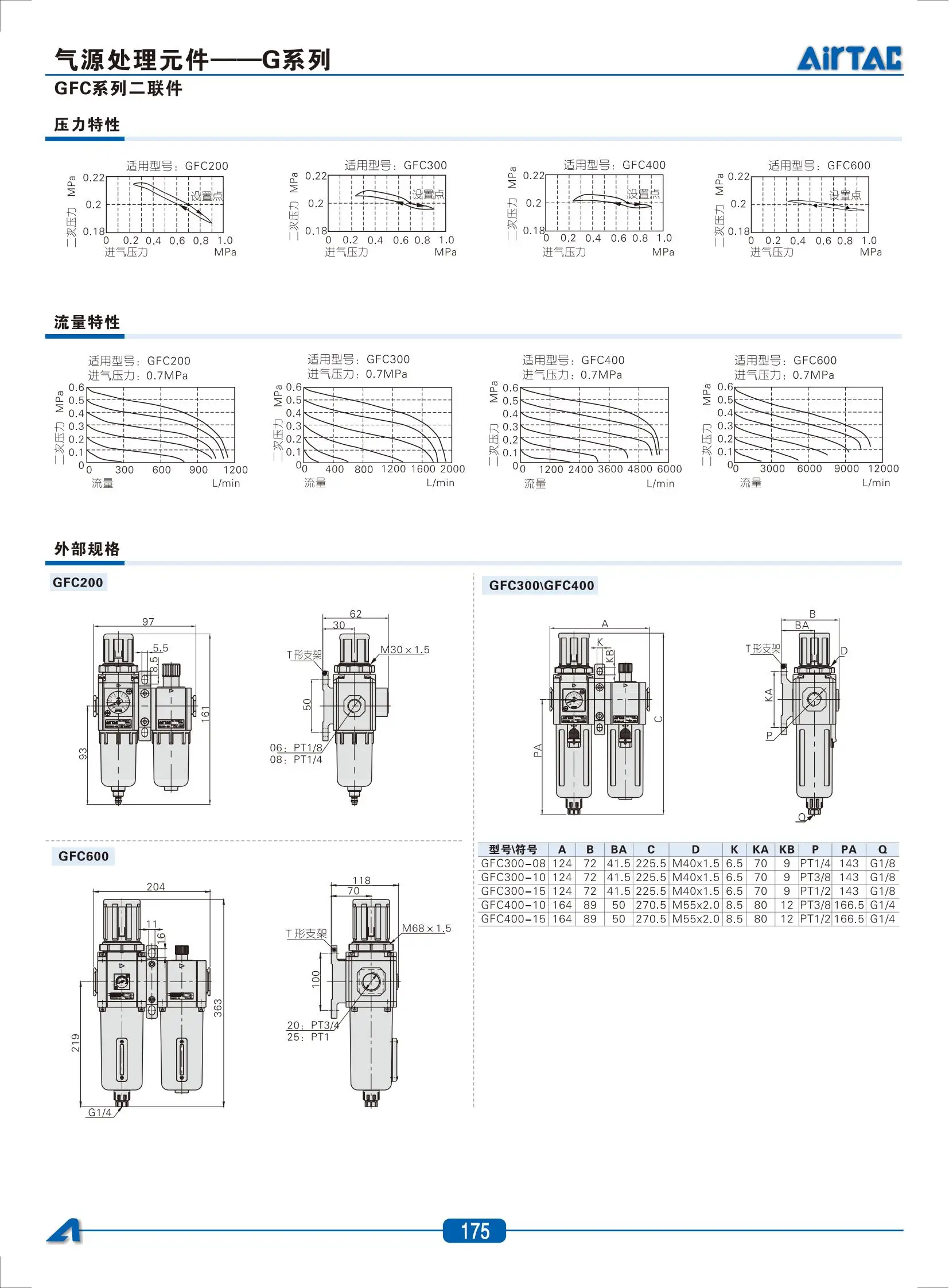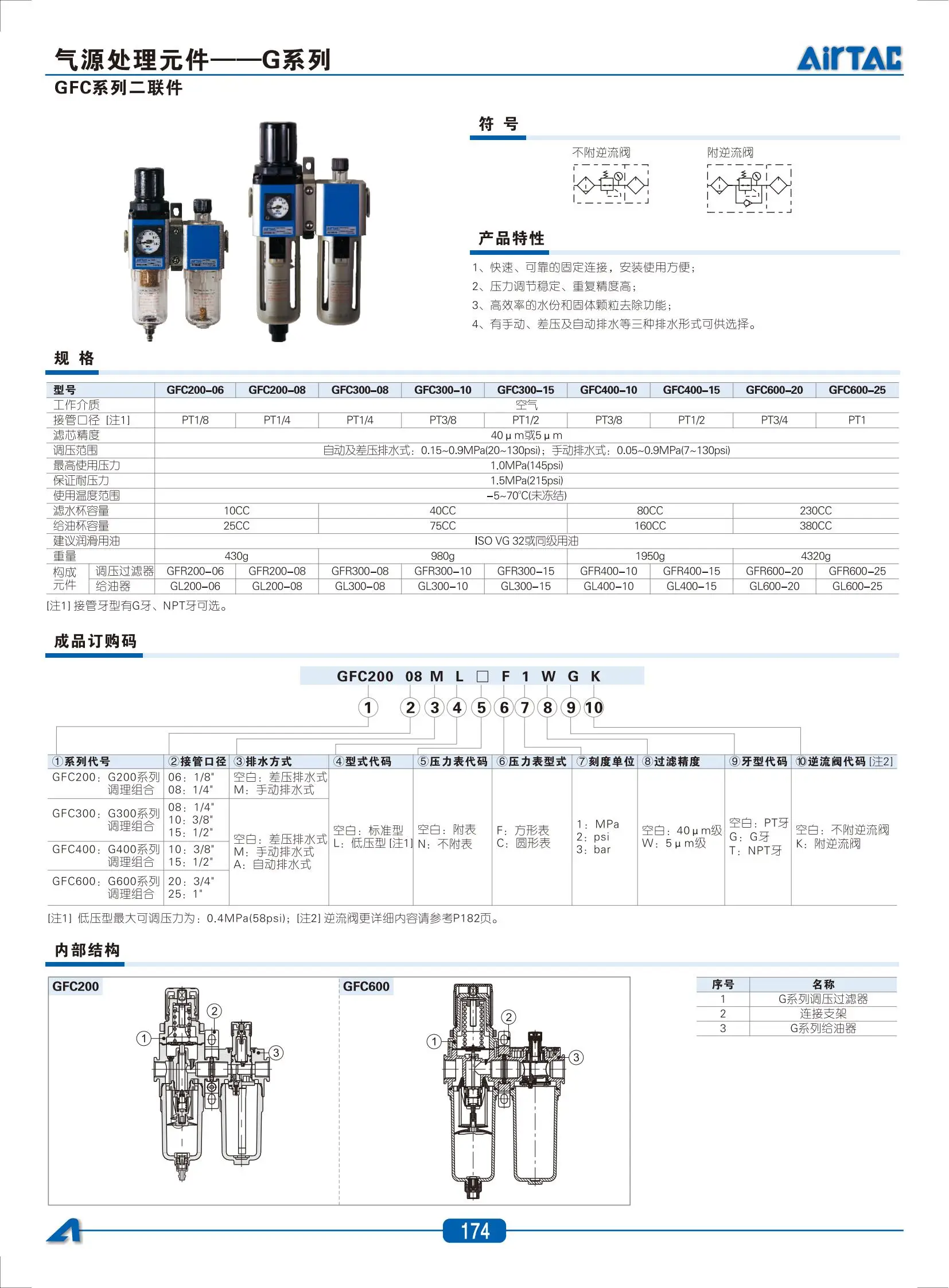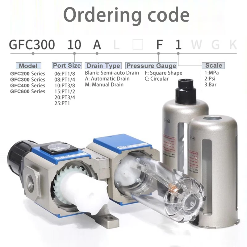 GFC200 Airtac/300/400/600ชุดตัวกรองแยกน้ำน้ำมัน G