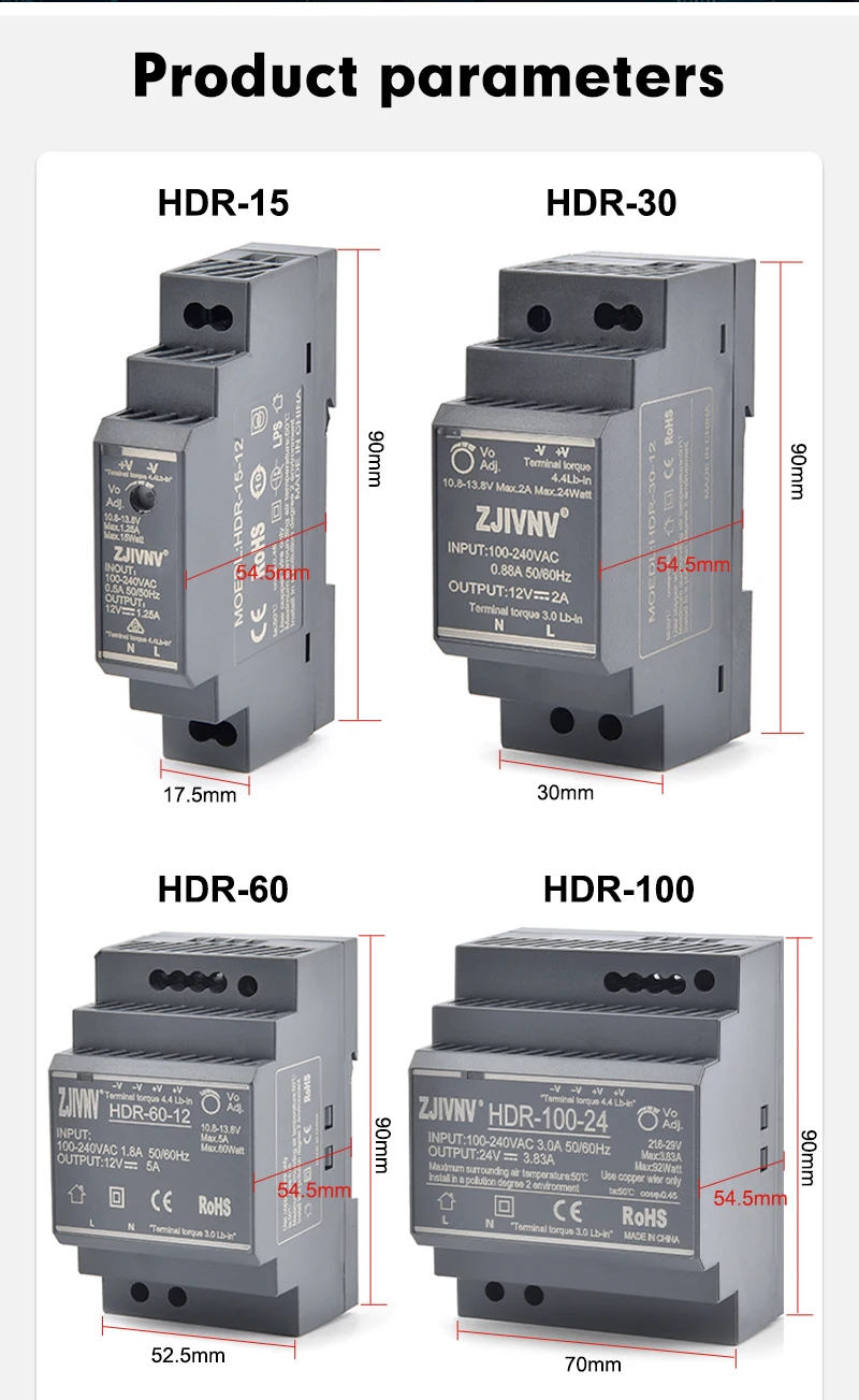 15W 30W 60W 100W 150W HDR DIN Rail แหล่งจ่ายไฟ AC 100-240V ถึง DC 12V 24V คุณภาพสูง HDR-15 HDR-30 HDR-60 HDR-100 HDR-150