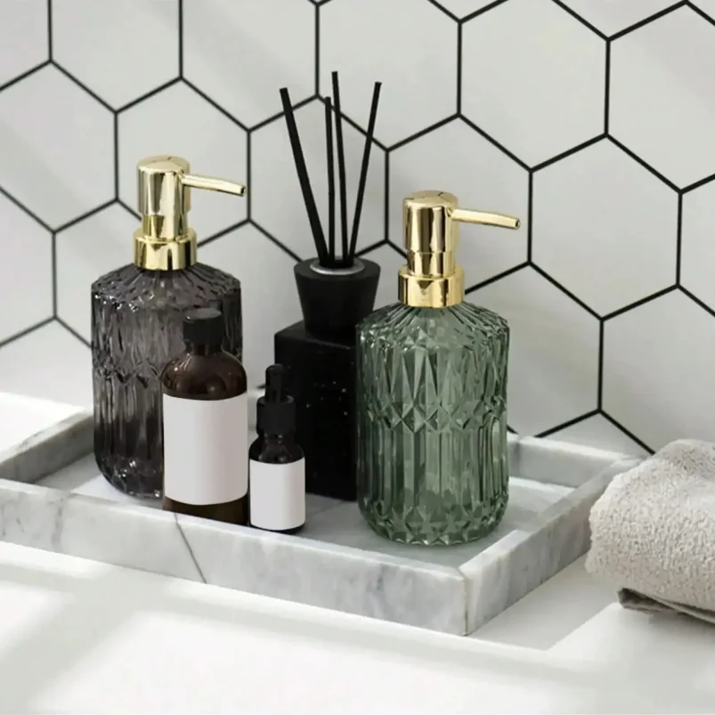 ขวดสบู่เหลวแบบกด 400 มล. ขวดแก้วใสสำหรับใส่เจลล้างมือ ขวดเปล่าสำหรับกดเจล อุปกรณ์ในห้องน้ำ