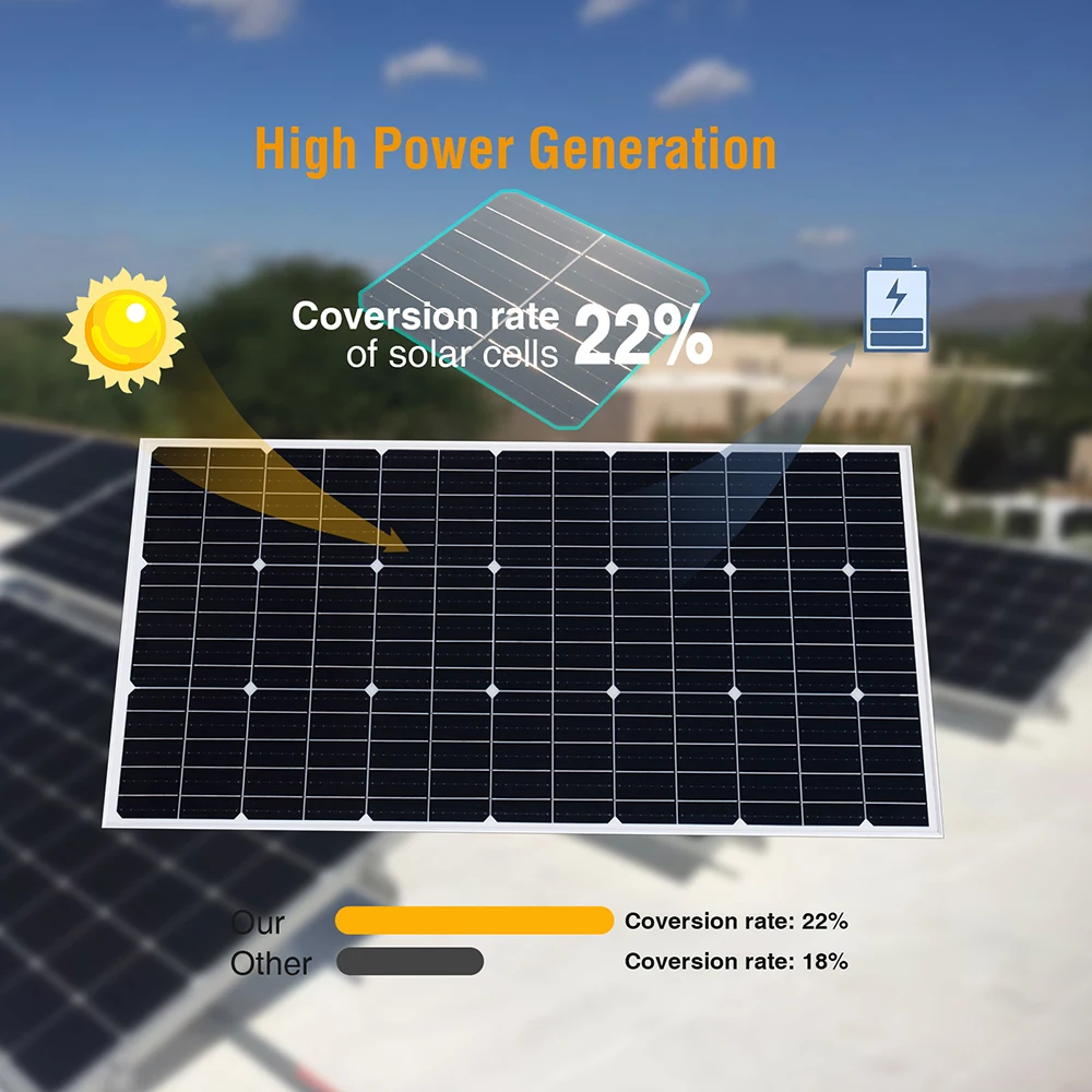 ชุดเซลล์โมโนแผงโซล่า PV 900W 750W 600W 450W 300W 150 W กรอบอลูมิเนียมแสงอาทิตย์แคมป์ปิ้งระเบียงบ้านชาร์จ12V