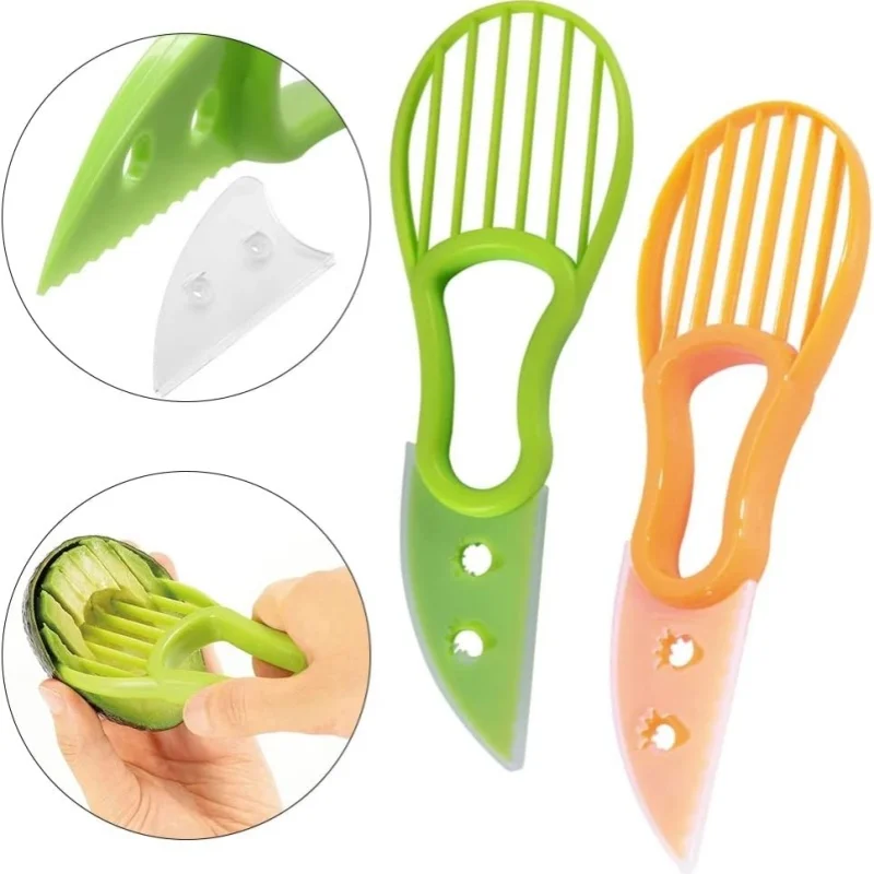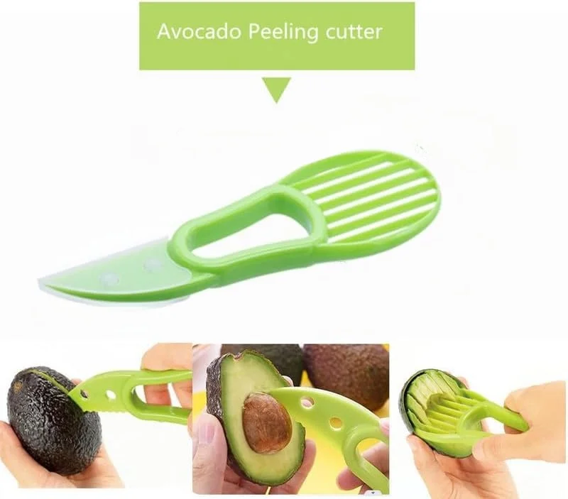 3 In 1 Avocado Slicer Shea Corer Butter ผลไม้ Peeler เครื่องตัด Pulp Separator มีดพลาสติกครัวผักเครื่องมือครัว Gadgets
