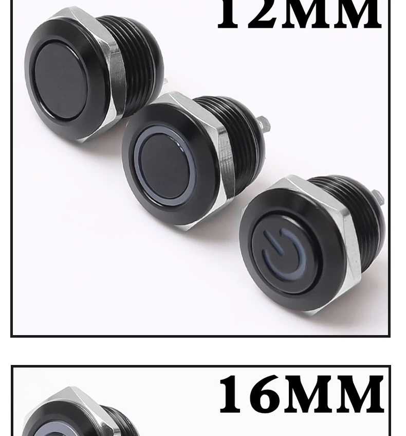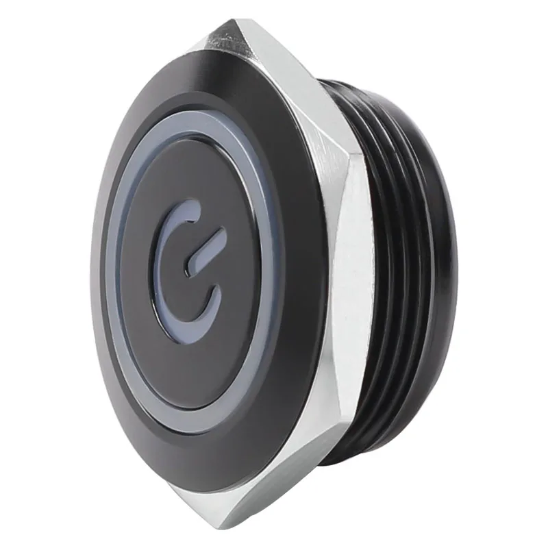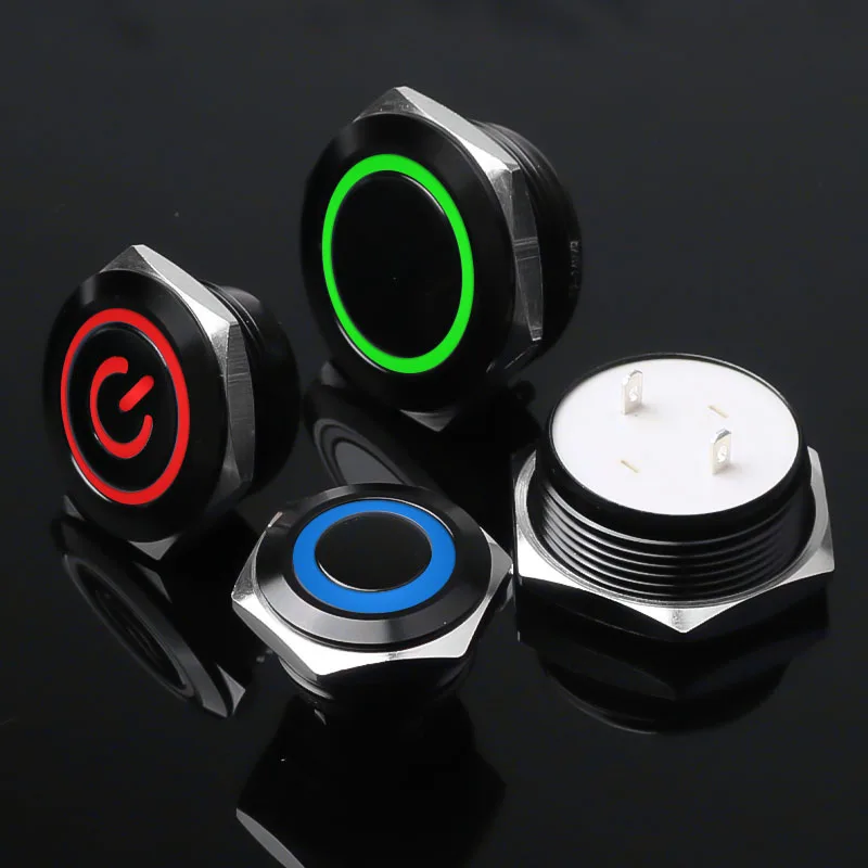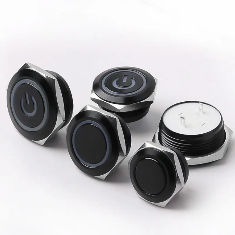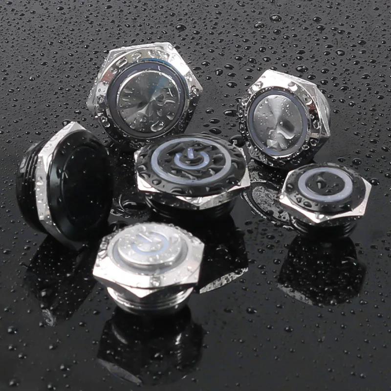 สวิตช์กระดุมโลหะสั้น12/16/19/22มม. หัวแบนกันน้ำพร้อมไฟ LED ชั่วขณะ1NO 6V 24V