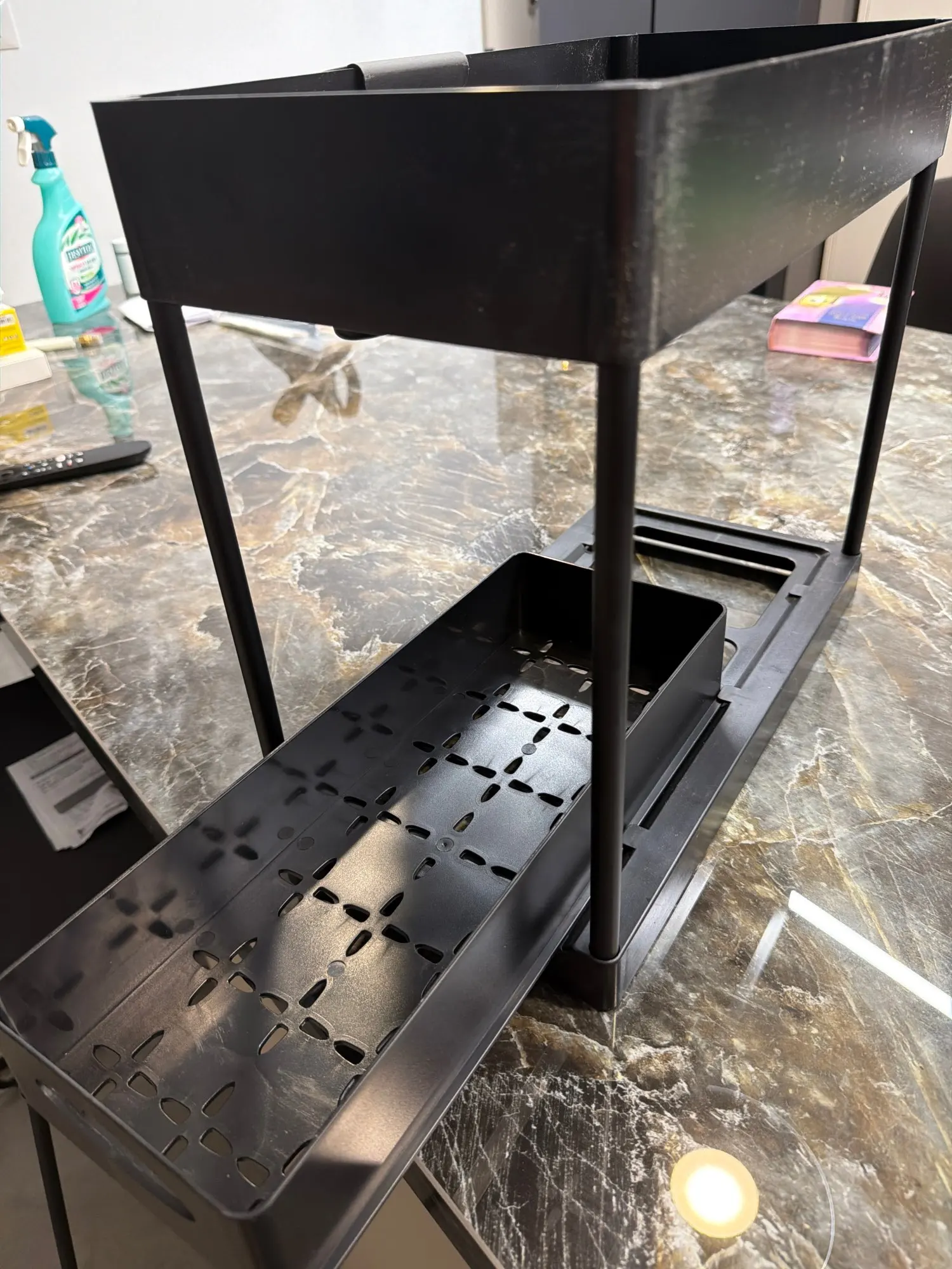 ซึ่งเหมาะสําหรับตู้ใต้อ่างล้างจานส่วนใหญ่ โดยใช้พื้นที่ใต้อ่างล้างจานเพื่อจัดเก็บอุปกรณ์ทําความสะอาดได้อย่างมีประสิทธิภาพ ทําให้สิ่งของของคุณเป็นระเบียบและจัดเก็บอย่างเป็นระเบียบบอกลาพื้นที่รกๆ