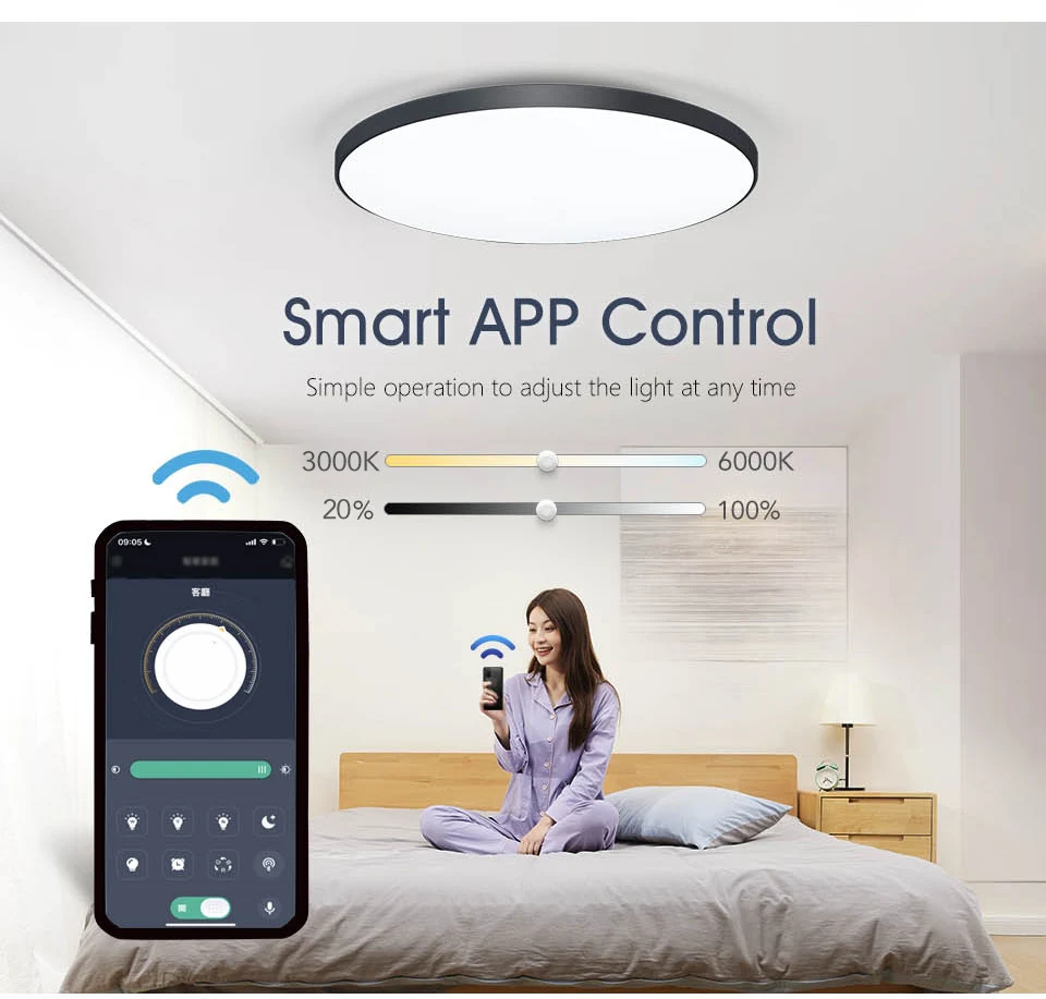 โคมไฟเพดาน LED อัจฉริยะ 36W 50W ไฟเพดาน LED โมเดิร์นหรี่แสงได้พร้อมรีโมทคอนโทรล APP สําหรับห้องนอนห้องนั่งเล่น