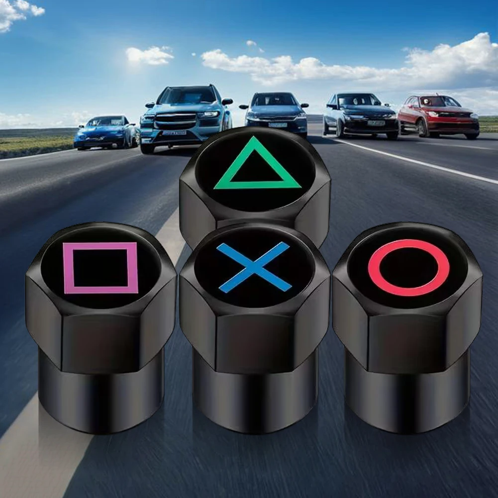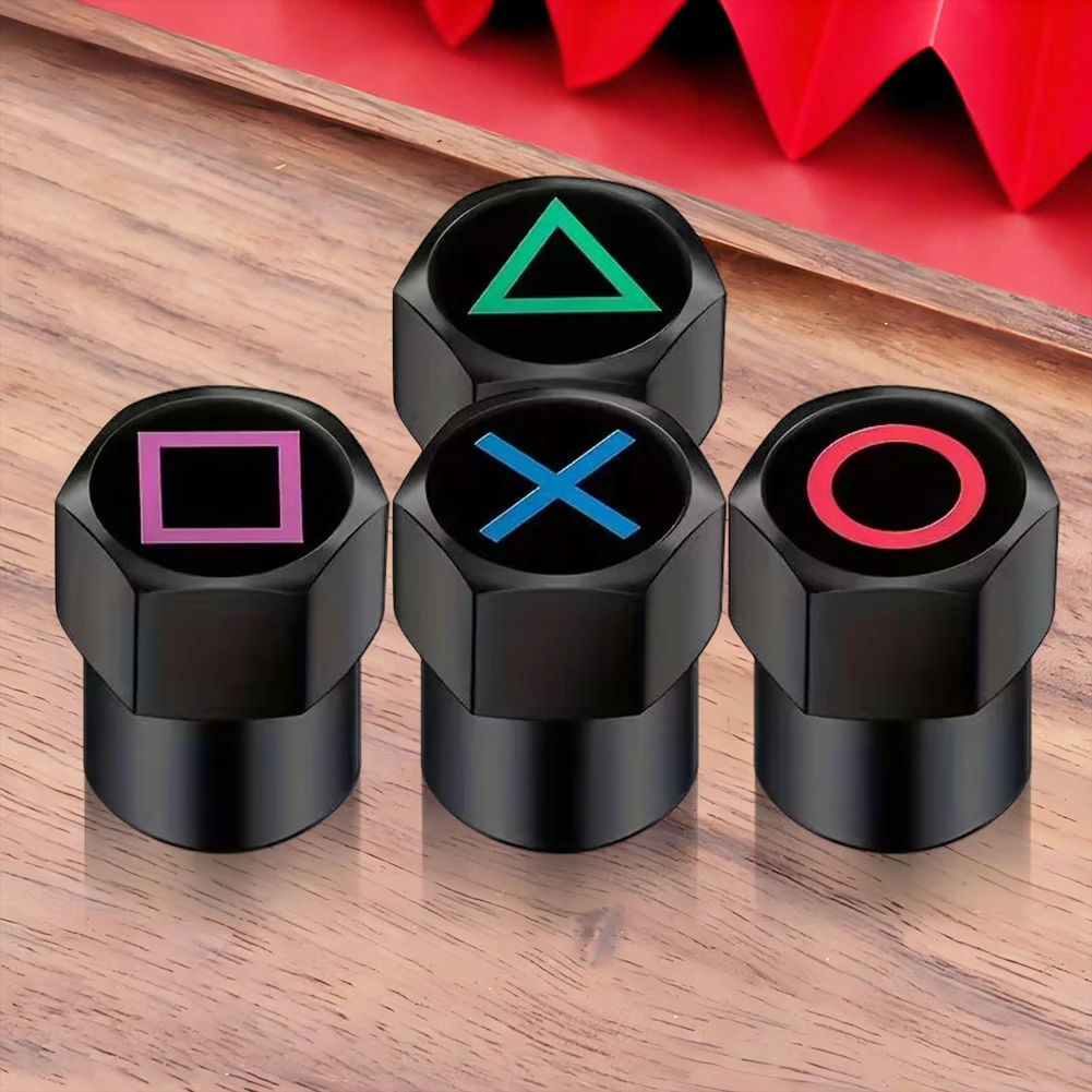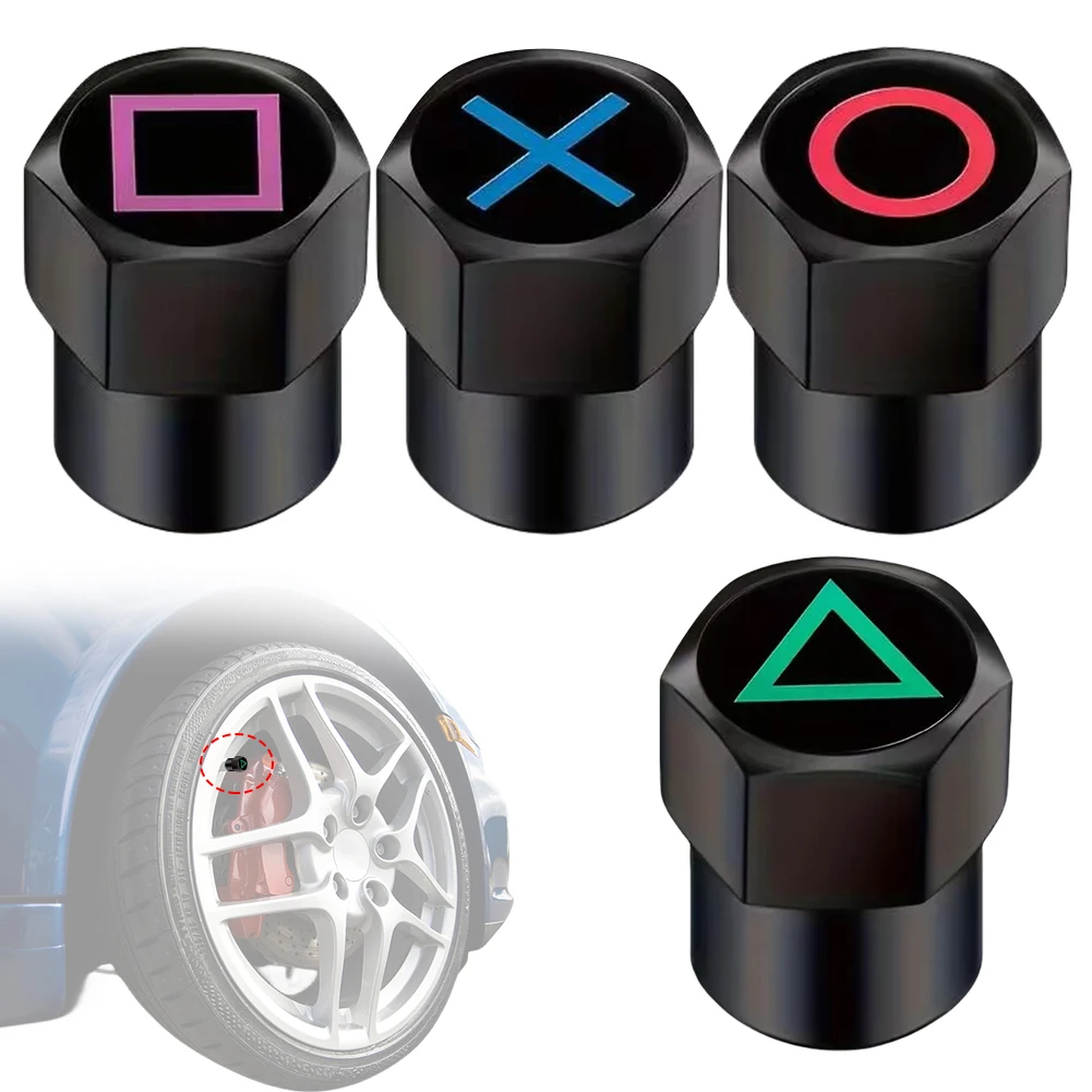 4 ชิ้นรถล้อยางวาล์ว Caps ปุ่มเกมสัญลักษณ์ยางล้อ Stem Air Valve ฝุ่นฝาครอบอลูมิเนียมยางวาล์ว Caps จัดแต่งทรงผมรถ