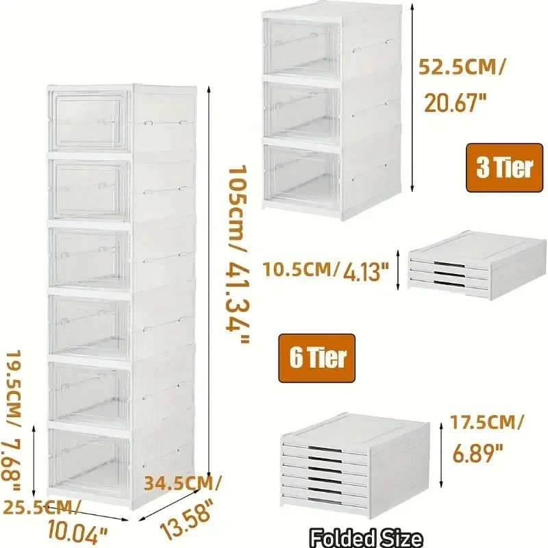 กล่องเก็บรองเท้า 1/3/6 ชั้น กล่องรองเท้าพับได้ ชั้นวางรองเท้ากันฝุ่นแบบซ้อนกันได้ ประหยัดพื้นที่ ตู้เก็บของแบบรวมในตัว