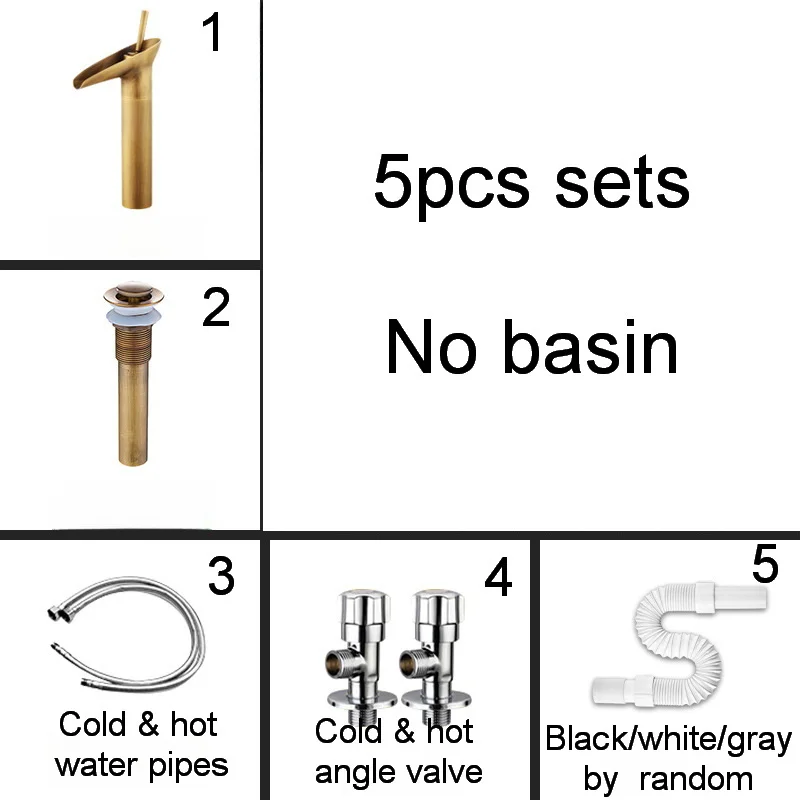 2-แพคเกจชุดก๊อกน้ำ: ท่อระบายน้ำ + ท่อระบายน้ำ + ท่อน้ำดีน้ำ + วาล์วมุม + ก๊อกน้ำ (ไม่มีอ่าง)