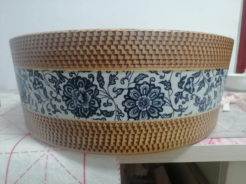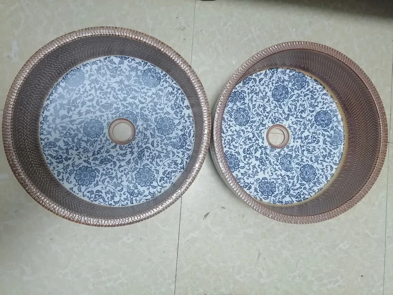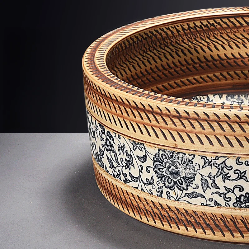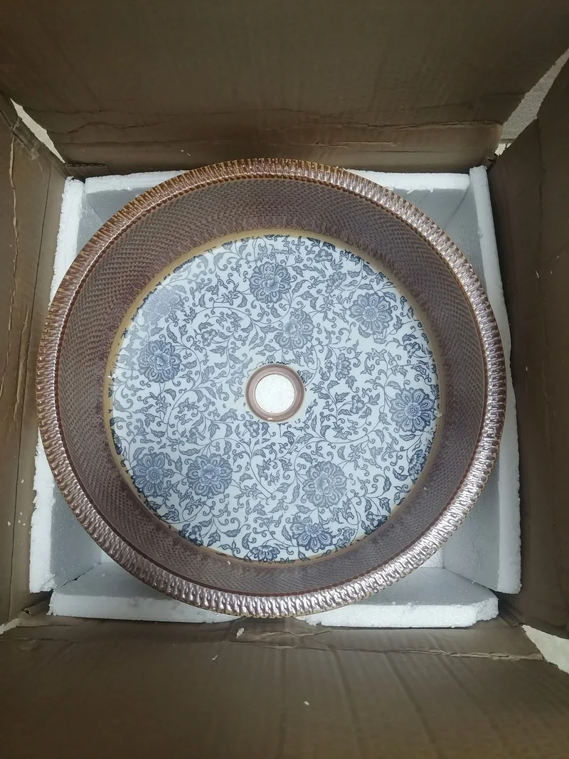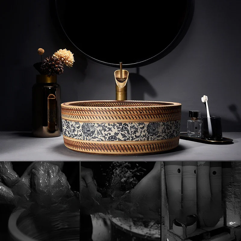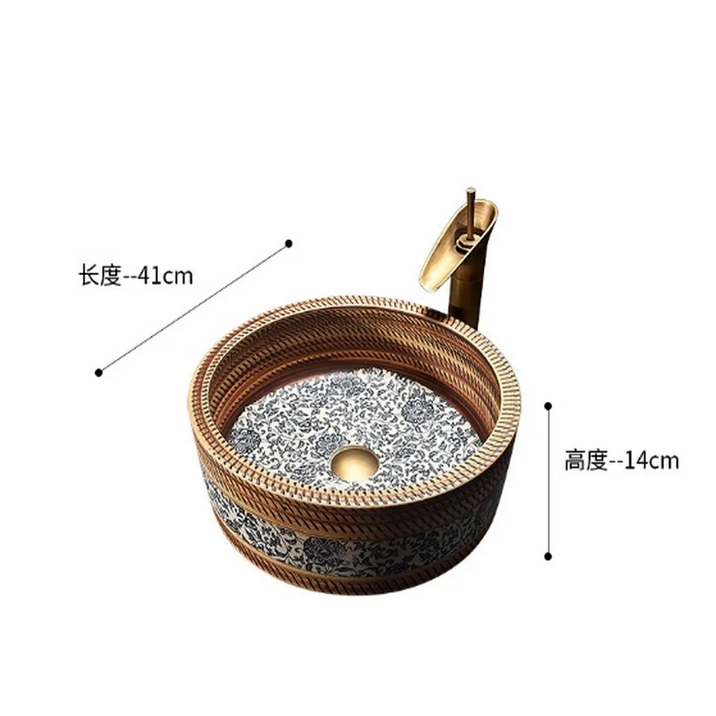 อ่างล้างหน้าเซรามิกแบบย้อนยุคเหนือเคาน์เตอร์อ่างซิงค์ห้องน้ำพร้อมก๊อกน้ำทรงกลม41ซม.