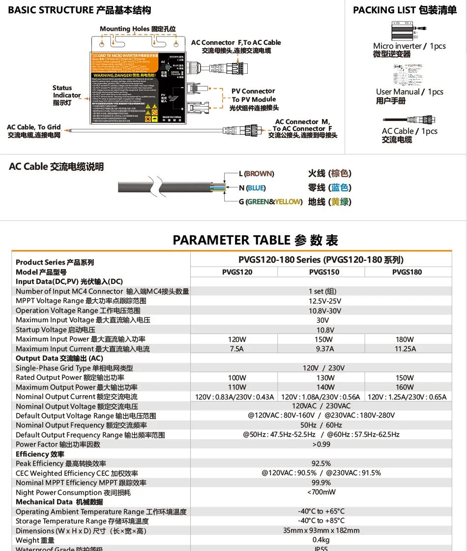 • This equipment is ON-GRID Microinverter, To make it work properly, it must be connected to the power grid correctly,and the power grid is working properly, When the power grid stopped working, it will also stop generating.