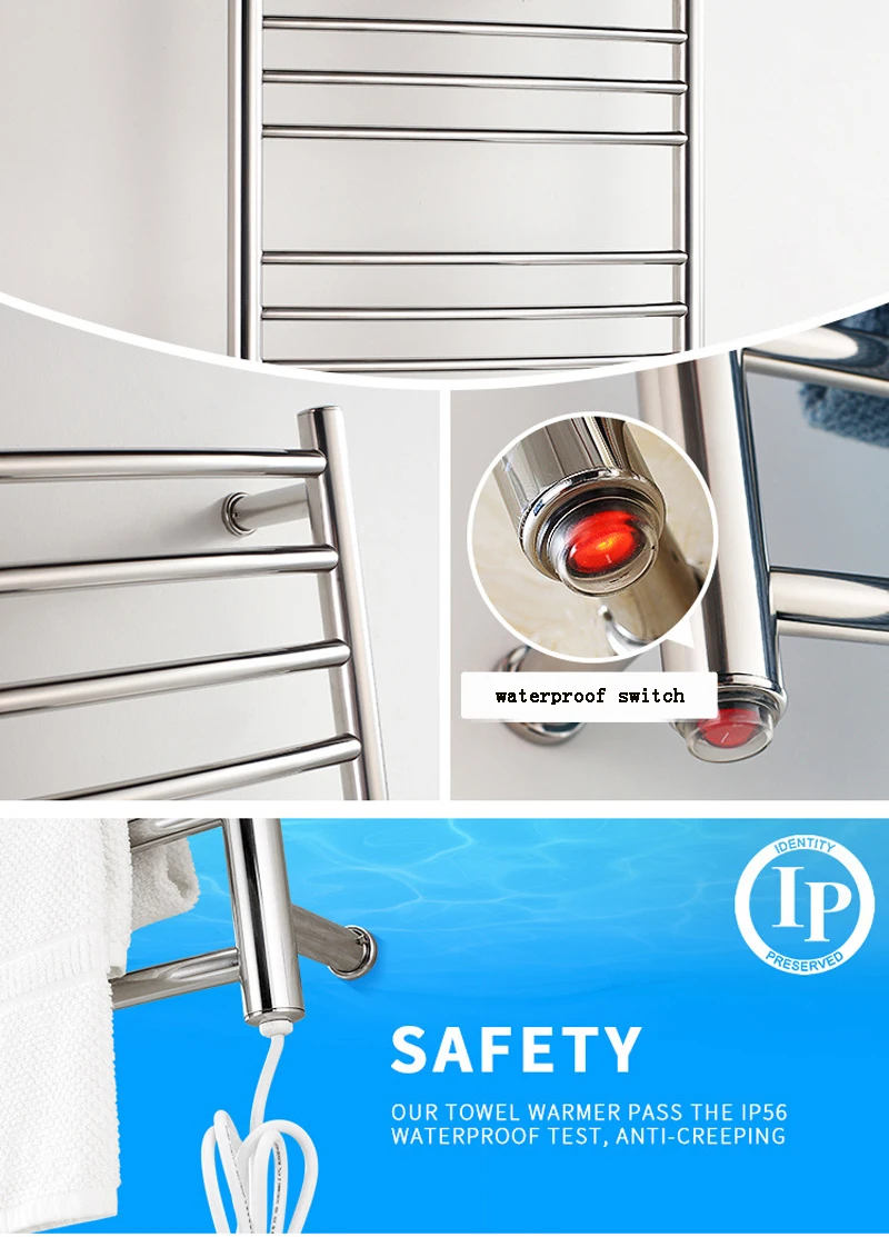 ใหม่ใหม่ IP56 ไฟฟ้าติดผนังผ้าเช็ดตัวอุ่นรางอุ่น Rack 304 สแตนเลสแฟชั่นสแควร์ผ้าเช็ดตัวอุ่นสําหรับใหม่