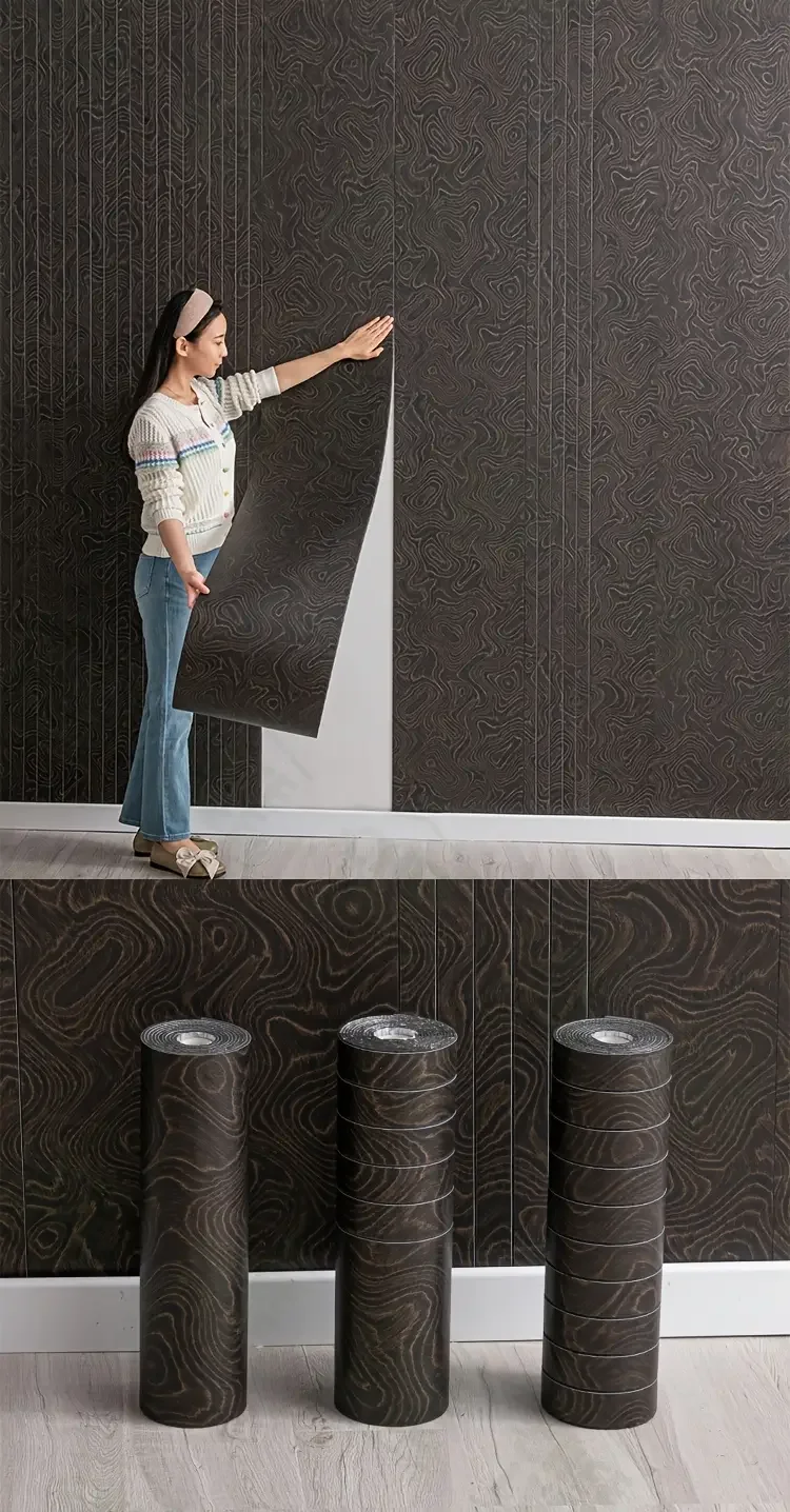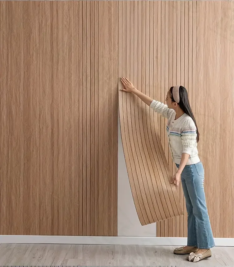 วอลเปเปอร์ลายไม้ 3 มิติ แบบลอกติด หนา ลายไม้เทียม สติ๊กเกอร์ติดผนัง ตกแต่งผนังห้องนอน